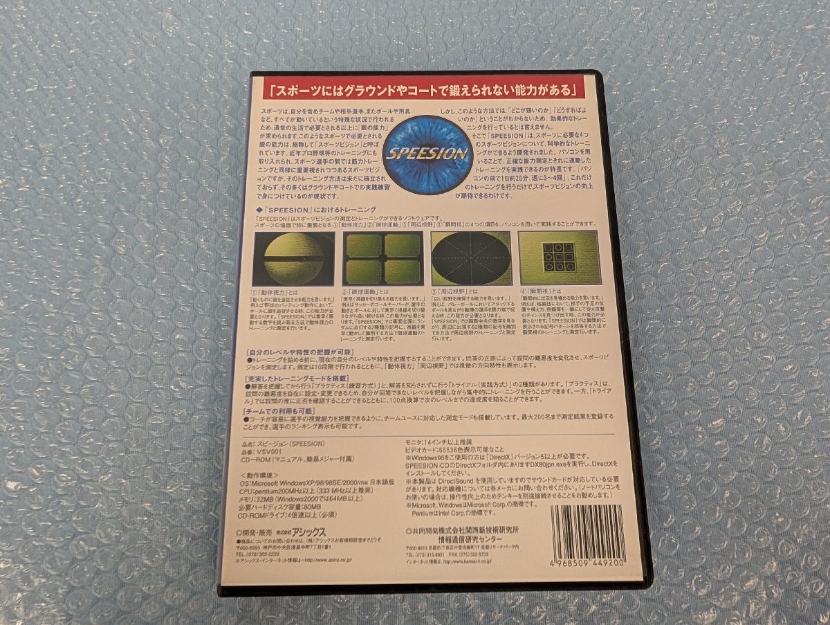 ◆ソフト スピージョン SPEESION スポーツビジョントレーニングソフト 日本語版 asics Windows95/98/98SE/Me/2000/XP 現状渡し
