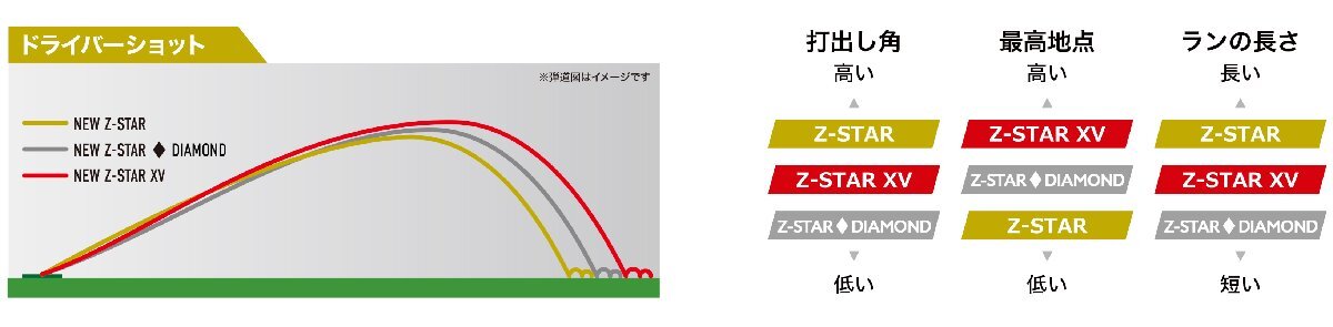 ★ ドライバースピン量がZ-STARシリーズの中で最も少なく、曲がりにくいため、曲がりを抑えたい人にピッタリ!