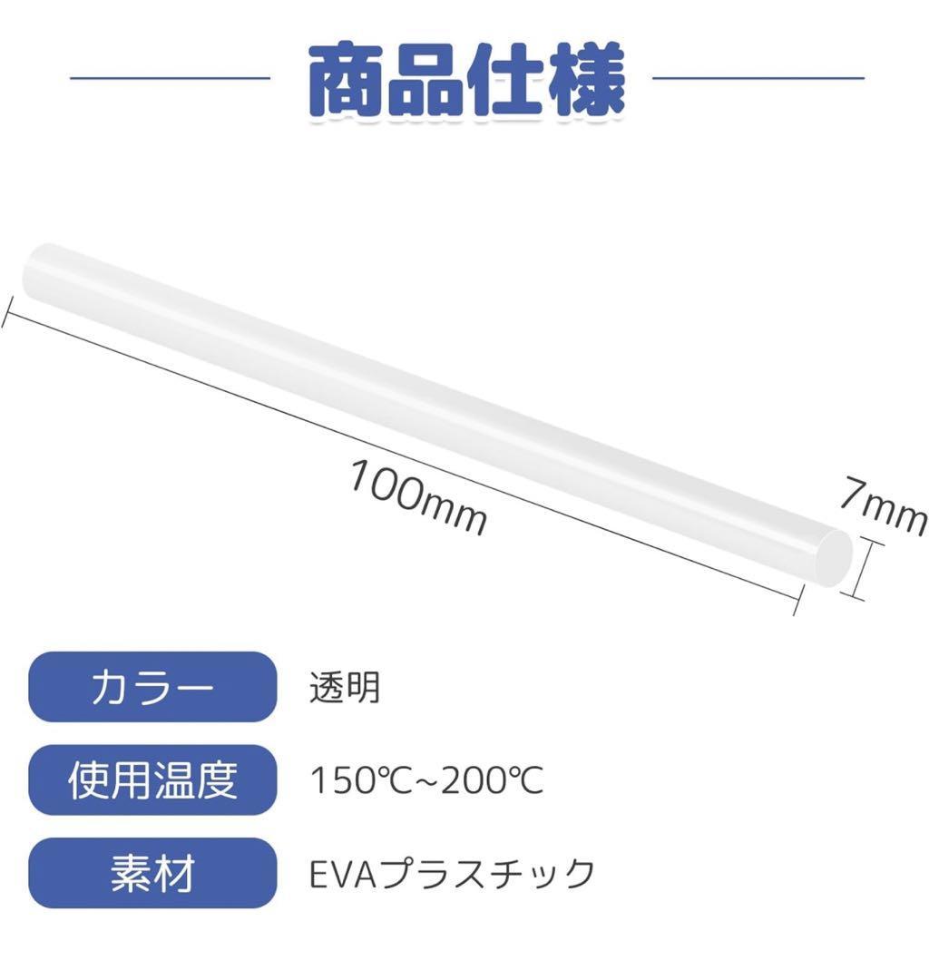 グルースティック 100本入 透明 ホットメルト 7mm*100mm グルーガン 強力粘着 高温ボンドガン ピタガン替え用 柔軟 無臭 速乾 DIY 修理用