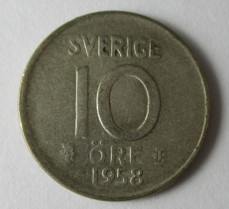 | スウェーデン 10オーレ銀貨 コイン 1958
