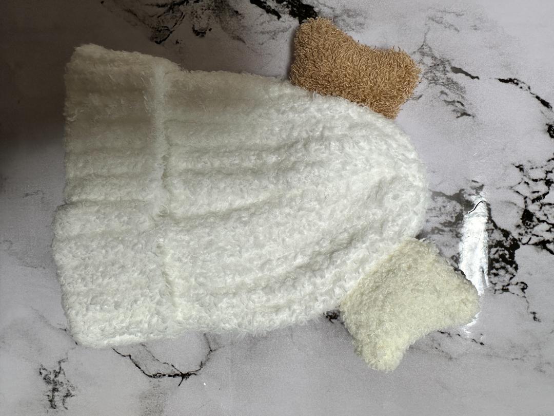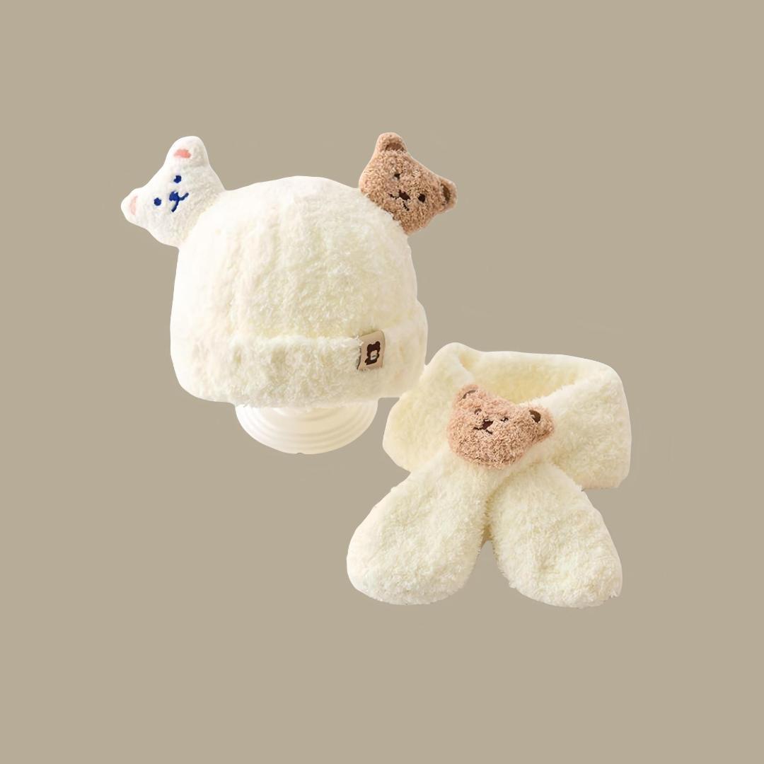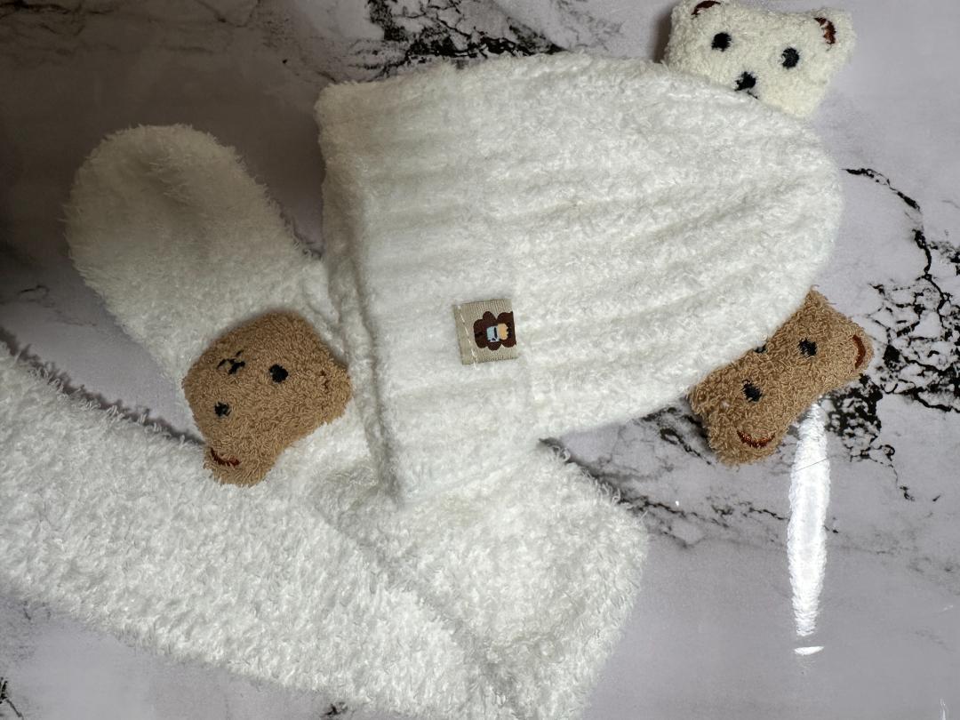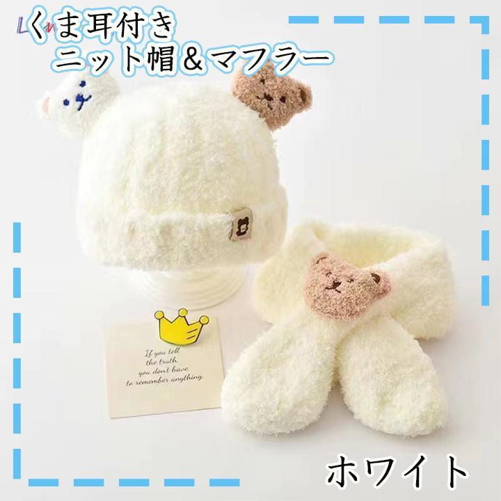 ブラウン ホワイト くま 耳付き ニット帽マフラー 2点セット ベビー 男女兼用 秋 冬