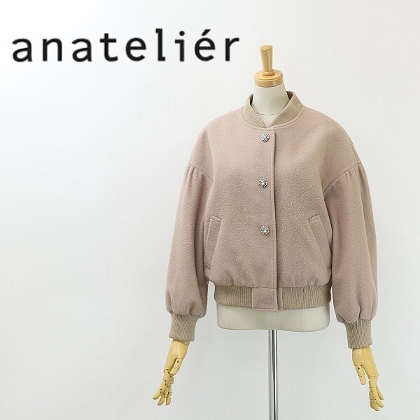 ◆anatelier アナトリエ ビジューボタン ドロップショルダー ウール ブルゾン ジャケット ピンクベージュ 38 | |