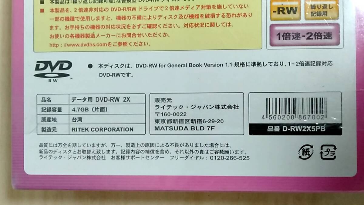 [m14957y z] RiTEK DVD-RW 4.7GB 5枚パック × 2ケース D-WR2X5PB ライテック・ジャパン
