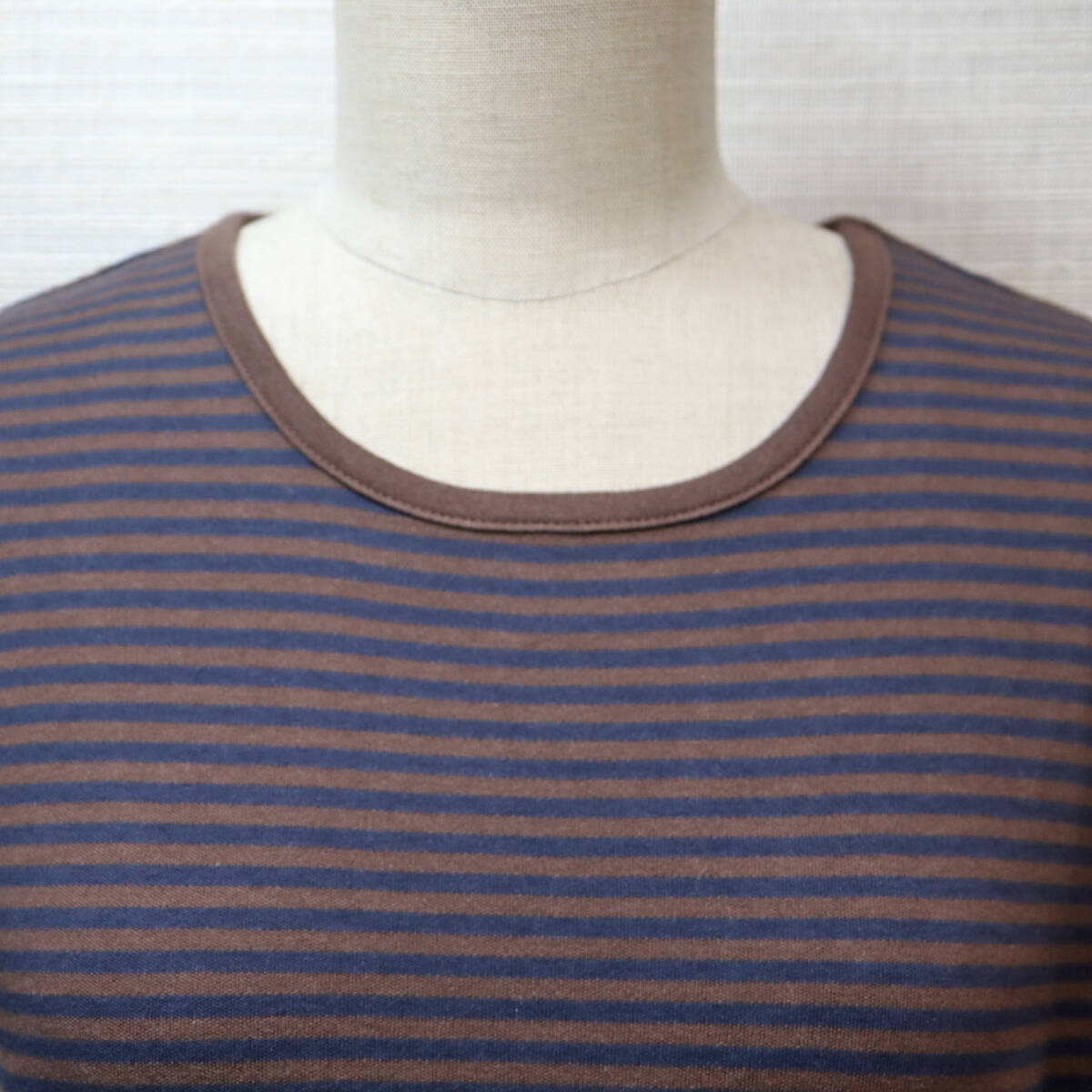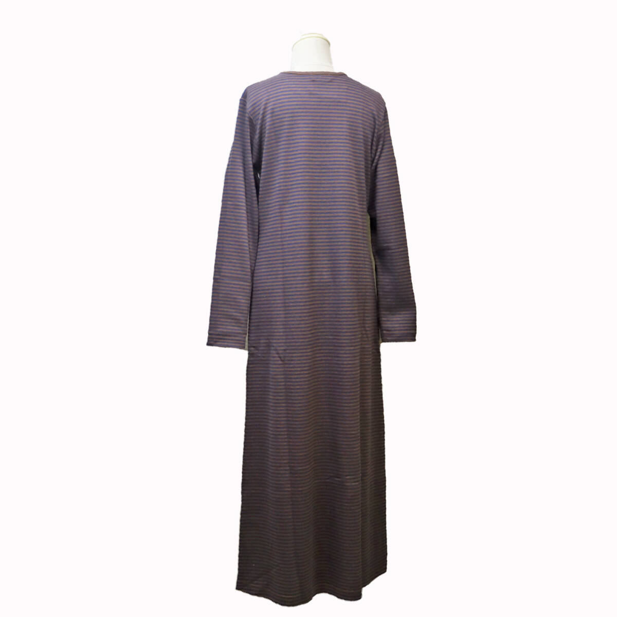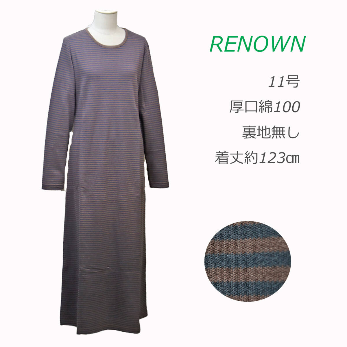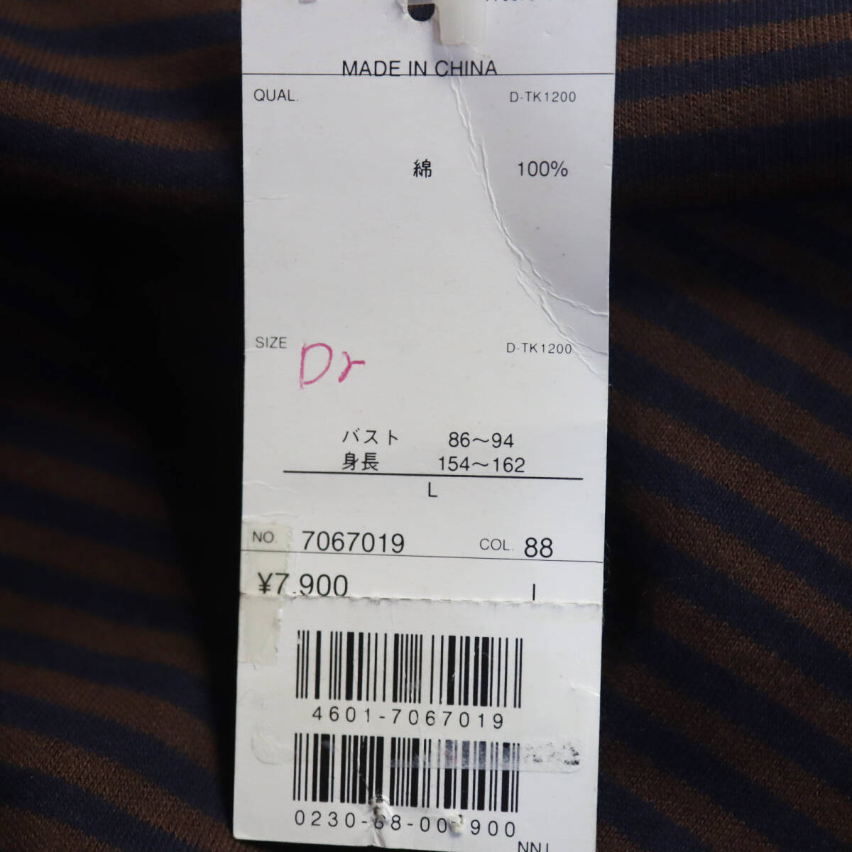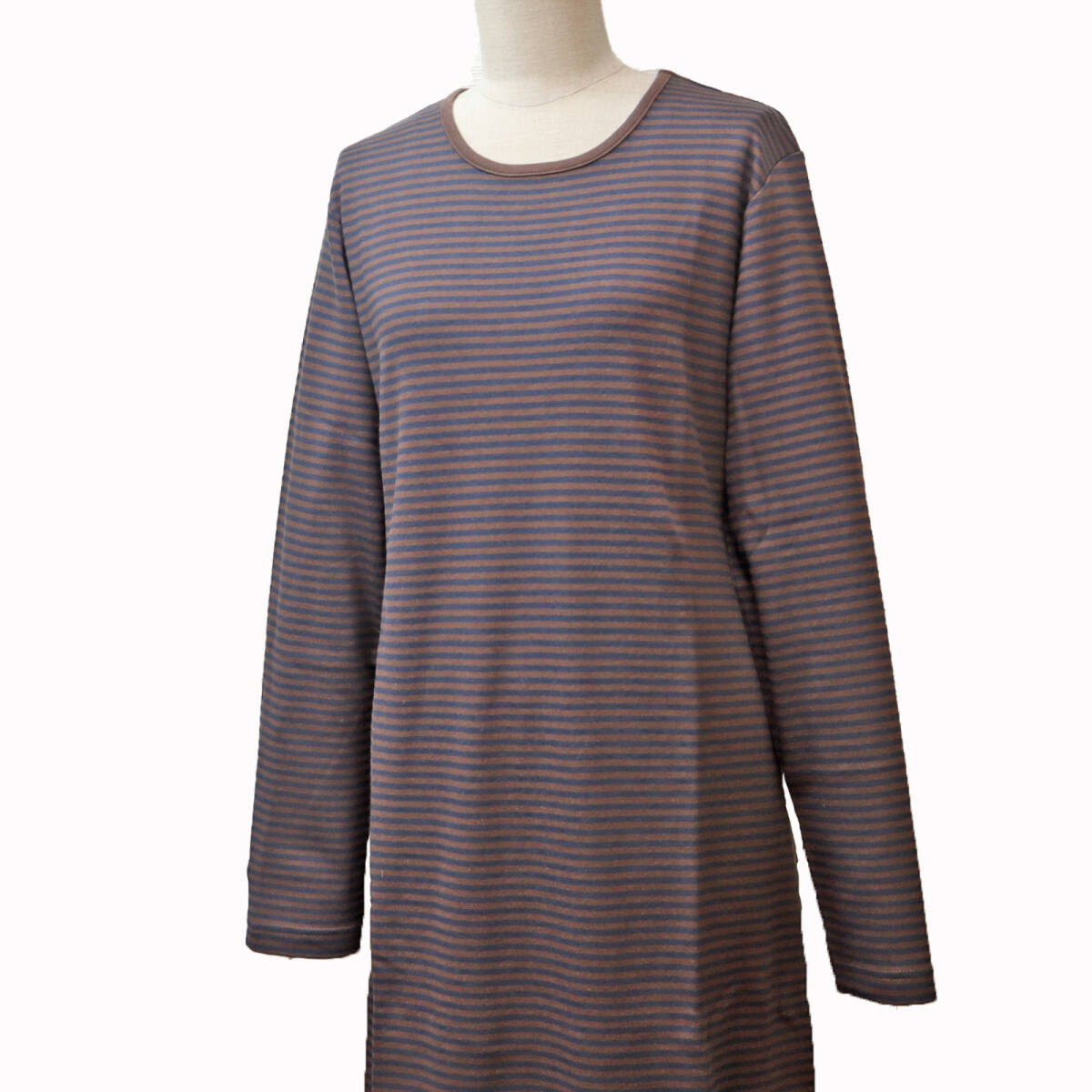 op31 ワンピース レディース 春秋 長袖 L 紺×茶 ネクストアイ レナウン ボーダー ルームウェア 綿