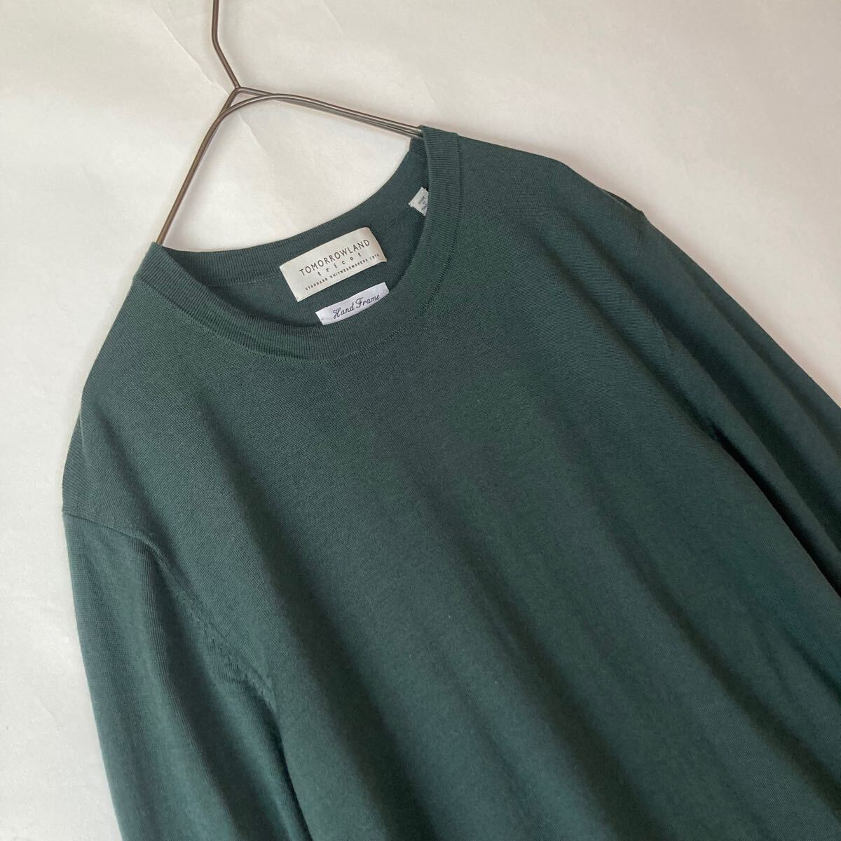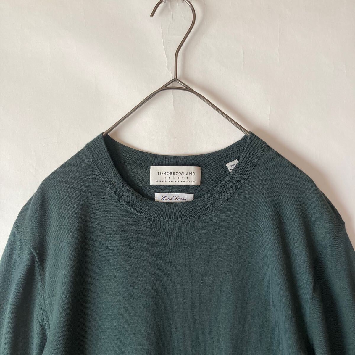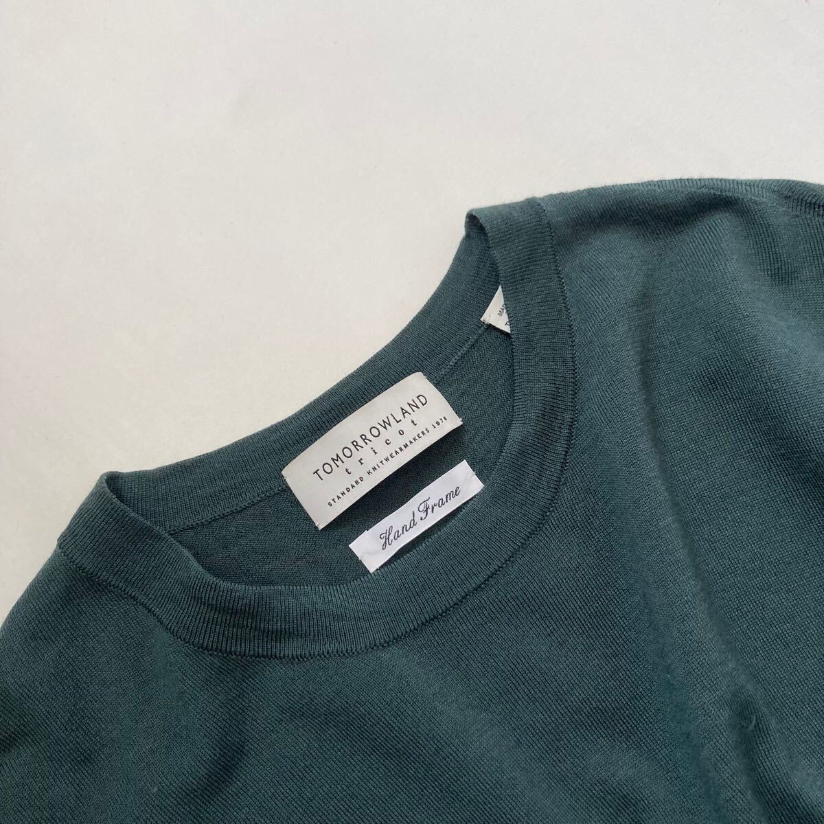 【美品】19AW TOMORROWLAND tricot トゥモローランド トリコ ウール ハイゲージ クルーネック ニット プルオーバー グリーン系 size S