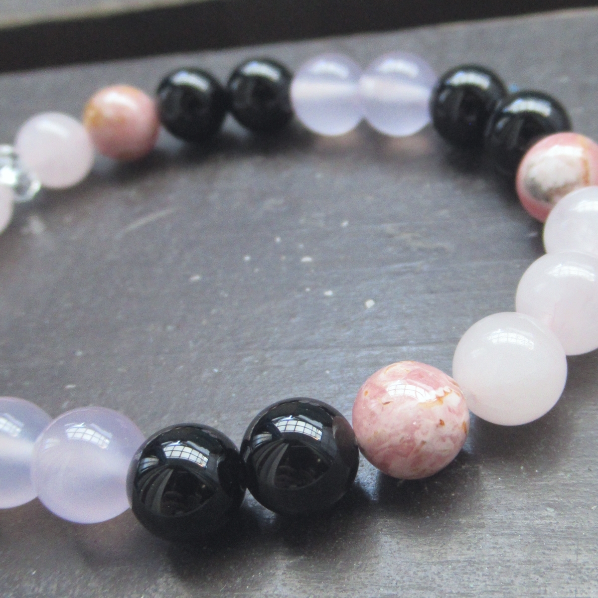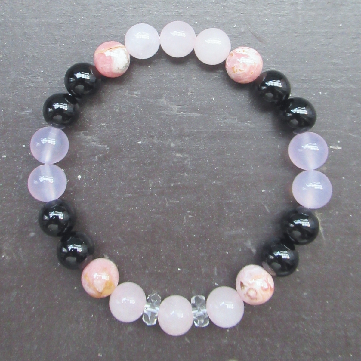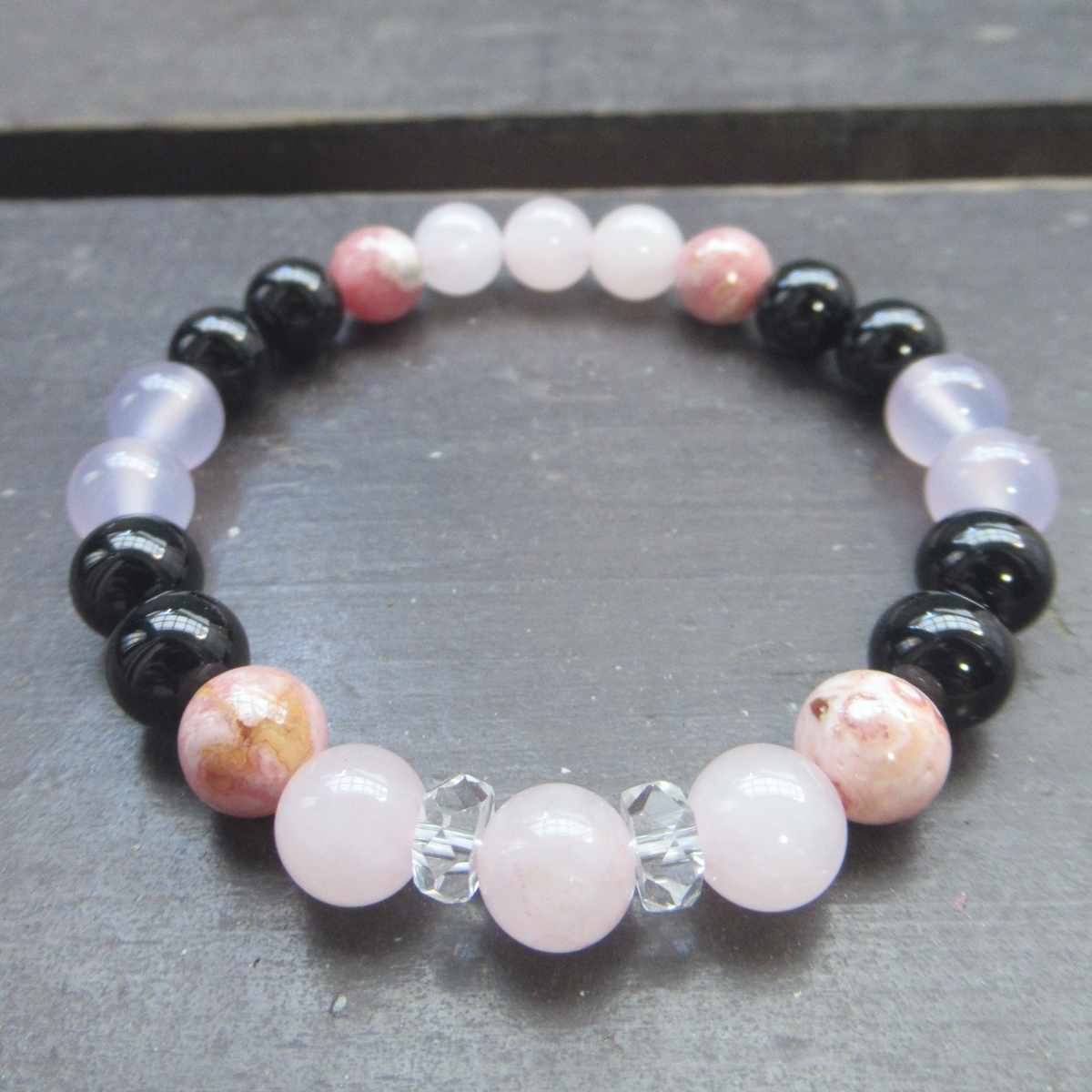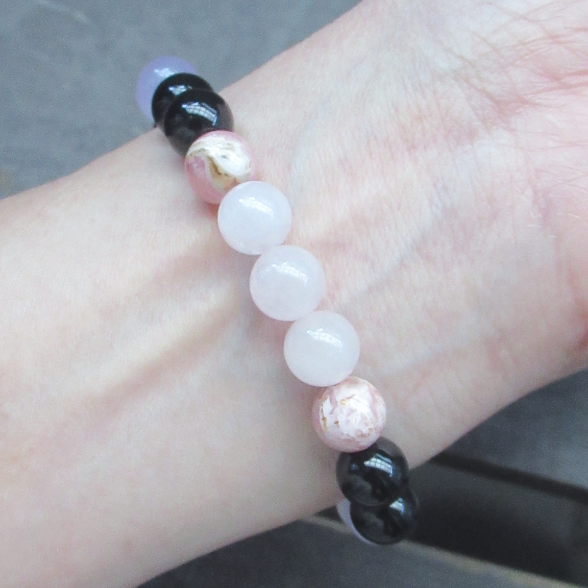 ローズクォーツxインカローズxパープルカルセドニーオニキスブレスレット  天然石 パワーストーン