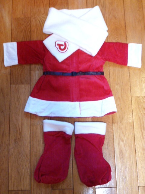 即決 不二家 店頭用 人形 フィギュア ペコちゃん 可愛い! 赤 サンタ 洋服 マフラー 靴下 セット