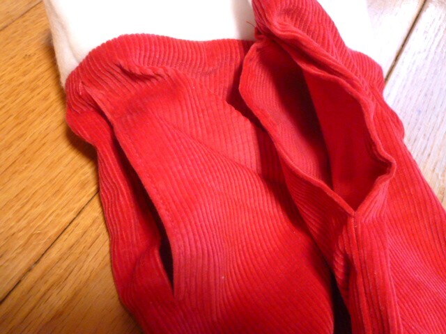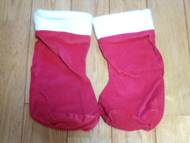 人形と台を固定するために靴下に切り込みが入っています。(写真)