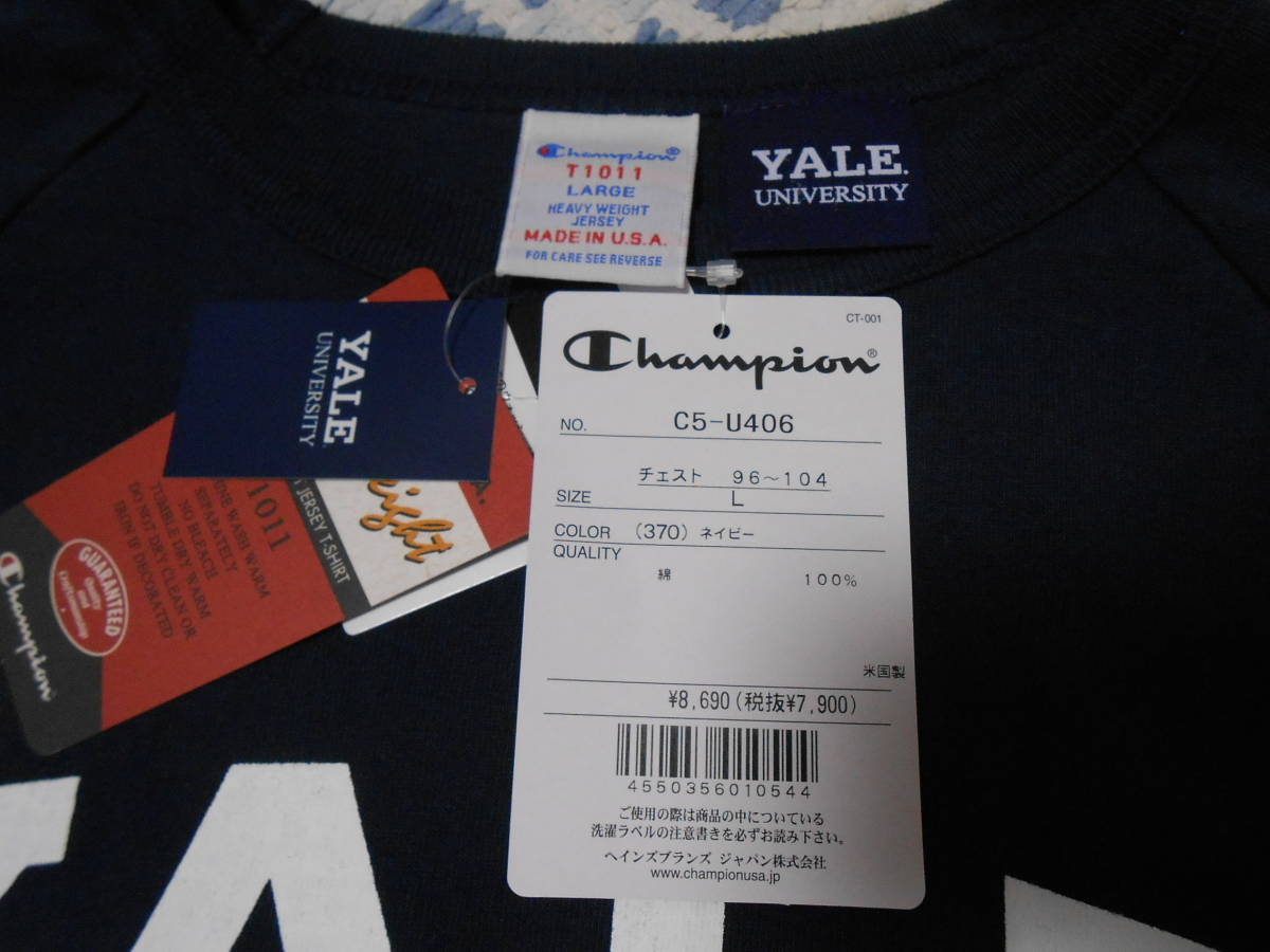 新品!YALE 3段ブルドッグ USA製!チャンピオン ヘビーウエイト T1011 ロングTシャツ ネイビー L C5-U406 リバース アメリカ製