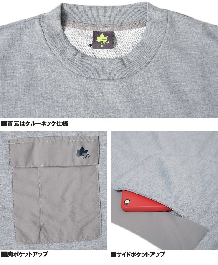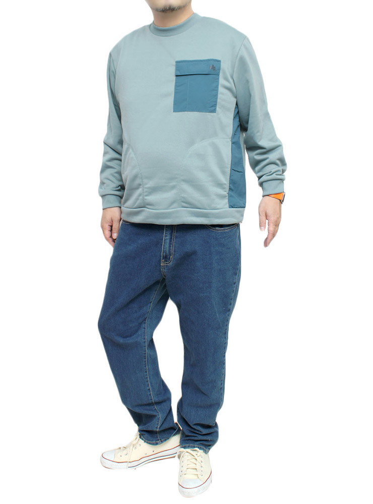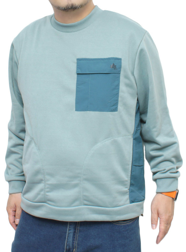 商品名 | 【新品】 2L サックス LOGOS PARK(ロゴス パーク) スウェット メンズ 大きいサイズ 裏毛 ナイロン 切替 ワイドポケット アウトドア トレーナー |