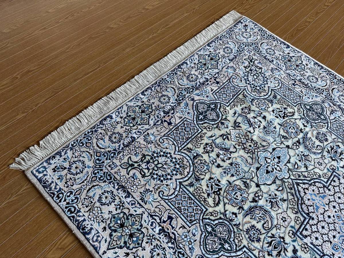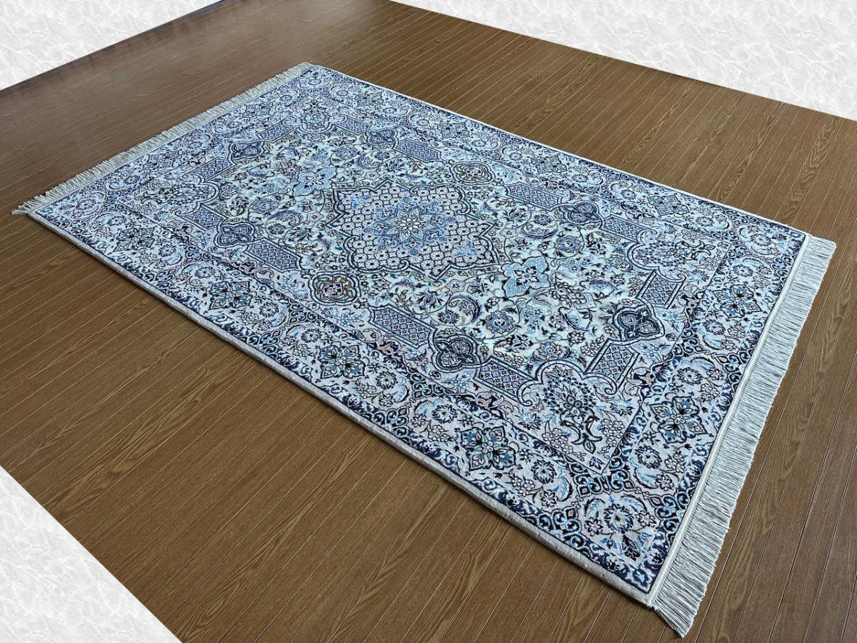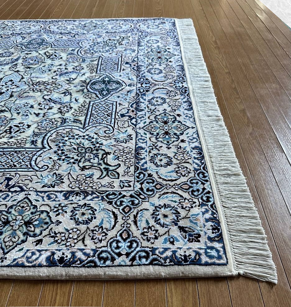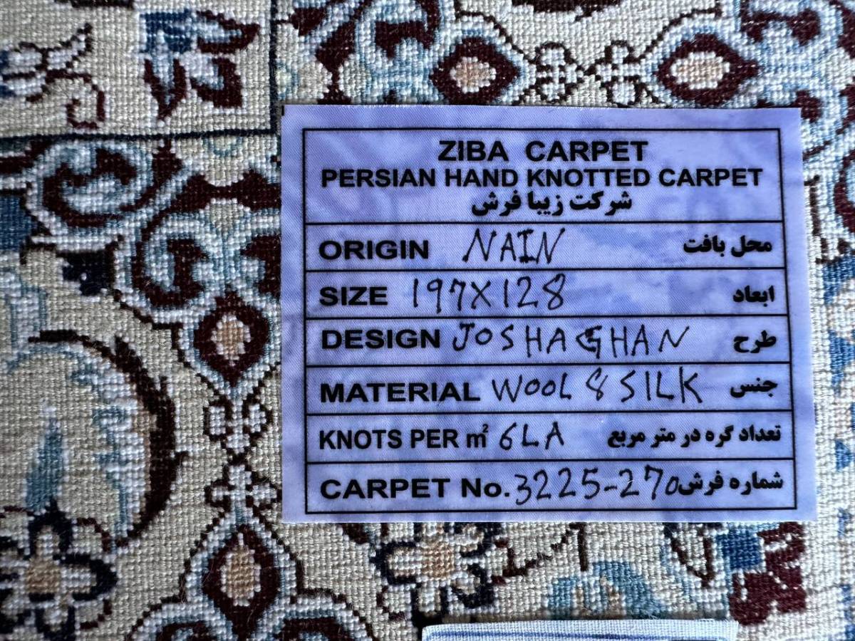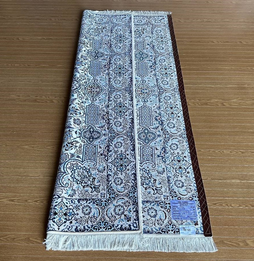 商品説明 | ★素材 : ウール&シルク・手織り/6LA ★サイズ : 約 197×128 cm (房を含まない長さです) ★厚み: 約 0.7 cm ★産地 : イラン・ナイン産 ※JOSHAGHANデザイン ★状態 : 新品 ナインはイラン中央部、イスファハンの北東部郊外に位置するオアシス都市です。1920年代よりイスファハンの影響を受けてペルシャ絨毯の生産が始まった、絨毯の5大主要産地の中ではクムに次ぐ新興の町です。 同じ新興の絨毯産地であるクムとは反対に、正当派好みの落ち着いた古典的なデザインが主流で、中央にアラベスクと花のモチーフと一緒になったオーソドックスなメダリオン柄が中心です。またベージュ(アイボリー)基調の色彩が多く、その他に濃紺・クリーム・白・赤・緑色等の限定された色彩による配色で、色数を敢て抑えた上品なものが特徴です。 織りはペルシャ結びで、グレードは、たて糸の撚り本数により、4La、6La、9Laに分類されます。(「La」は、ペルシア語で「層」を意味しています。)たて糸の撚りの本数が少ないほど織りが細かくなり、ハイグレードになります。 kxpgs342+ZIBACARPET絨毯 kxpgs342+ZIBACARPET取扱いペルシャ絨毯 FARSHEZIBAペルシャ絨毯_NAIN |