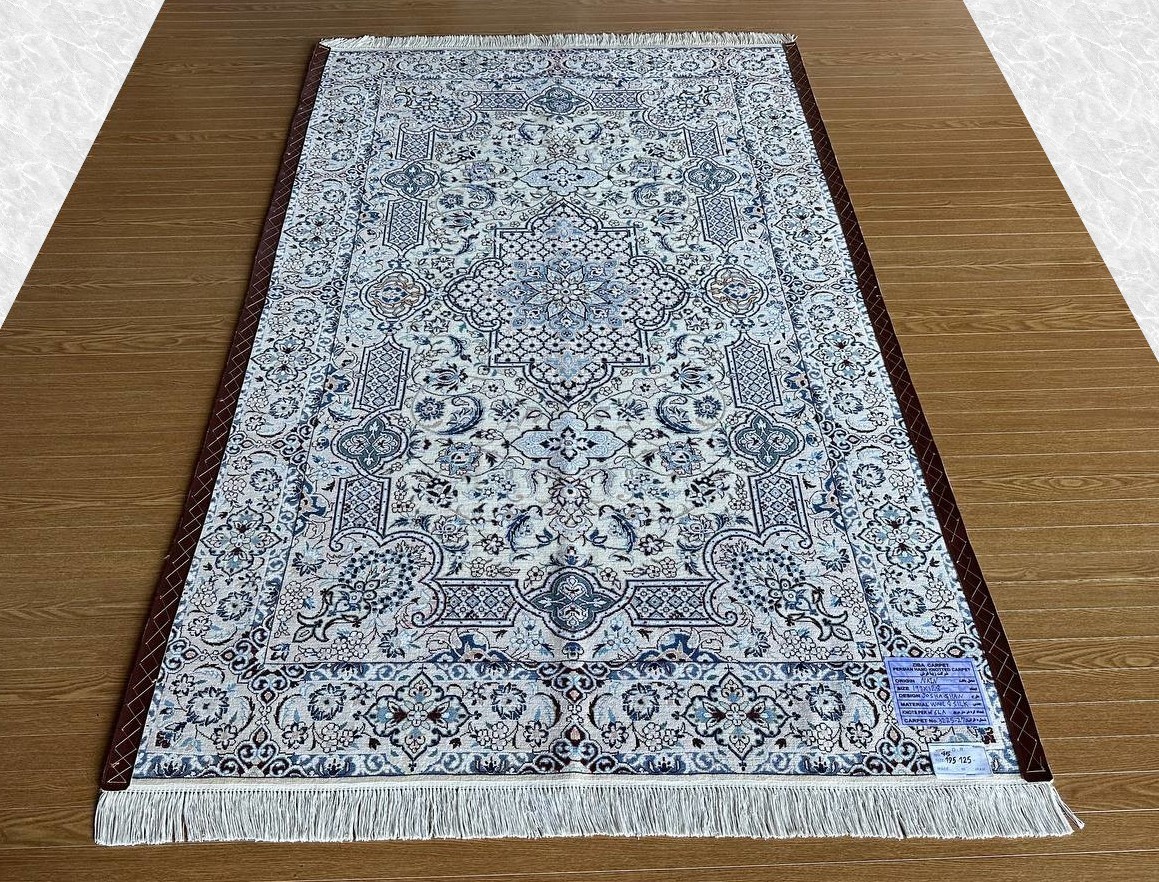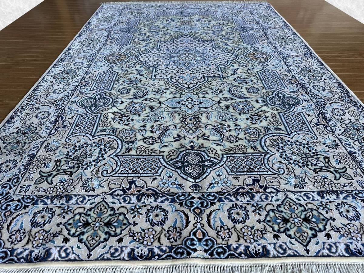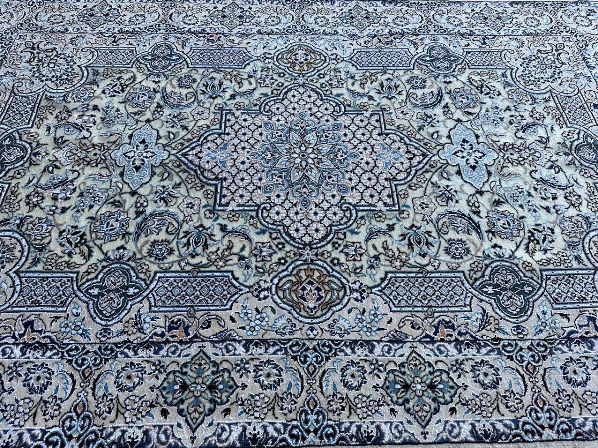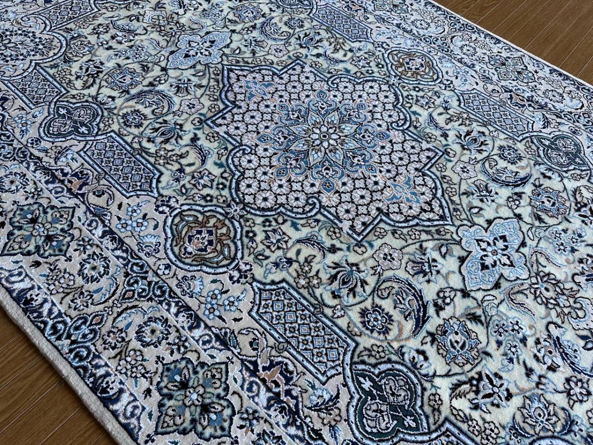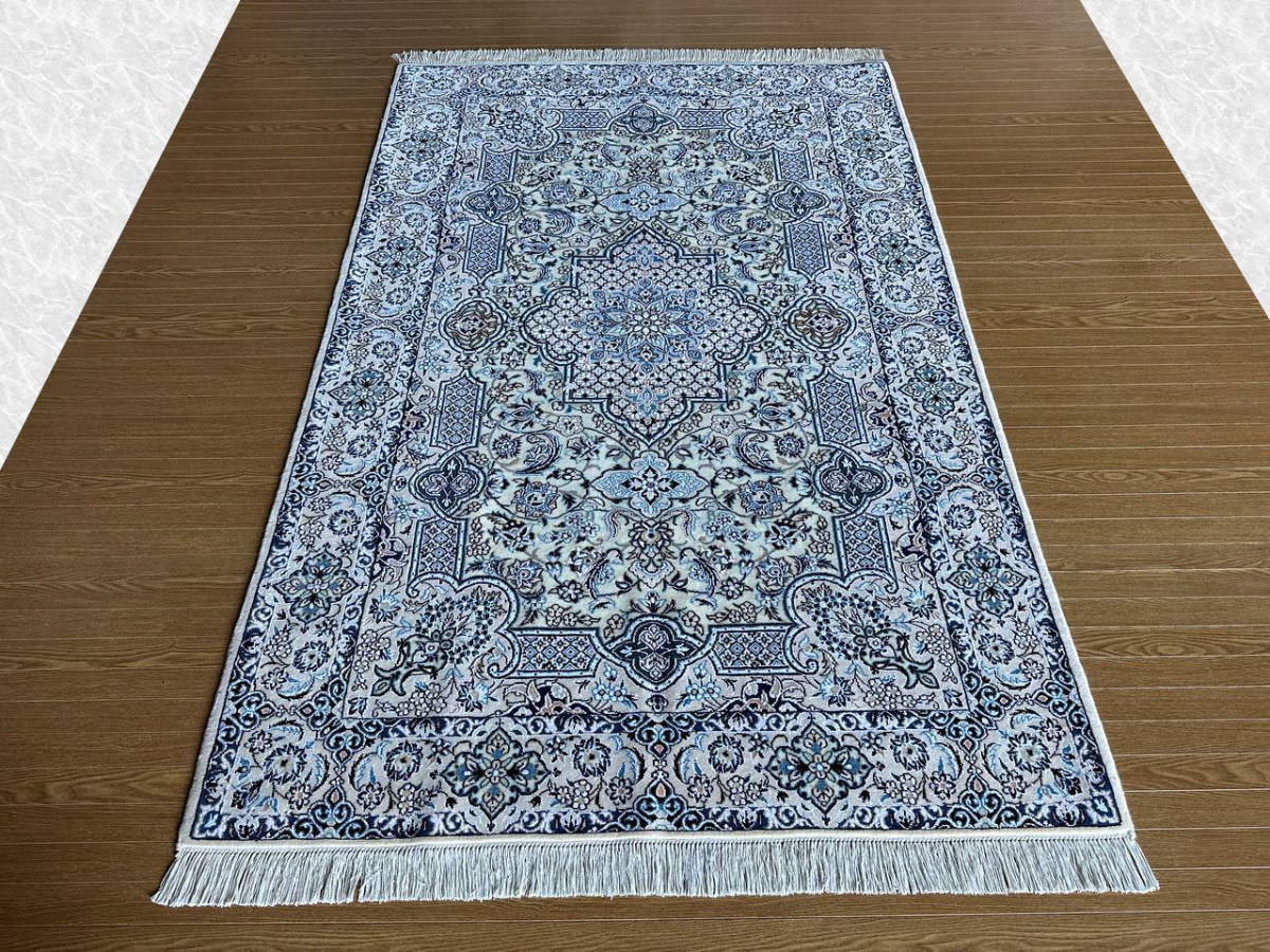 商品説明 | ★素材 : ウール&シルク・手織り/6LA ★サイズ : 約 197×128 cm (房を含まない長さです) ★厚み: 約 0.7 cm ★産地 : イラン・ナイン産 ※JOSHAGHANデザイン ★状態 : 新品 ナインはイラン中央部、イスファハンの北東部郊外に位置するオアシス都市です。1920年代よりイスファハンの影響を受けてペルシャ絨毯の生産が始まった、絨毯の5大主要産地の中ではクムに次ぐ新興の町です。 同じ新興の絨毯産地であるクムとは反対に、正当派好みの落ち着いた古典的なデザインが主流で、中央にアラベスクと花のモチーフと一緒になったオーソドックスなメダリオン柄が中心です。またベージュ(アイボリー)基調の色彩が多く、その他に濃紺・クリーム・白・赤・緑色等の限定された色彩による配色で、色数を敢て抑えた上品なものが特徴です。 織りはペルシャ結びで、グレードは、たて糸の撚り本数により、4La、6La、9Laに分類されます。(「La」は、ペルシア語で「層」を意味しています。)たて糸の撚りの本数が少ないほど織りが細かくなり、ハイグレードになります。 kxpgs342+ZIBACARPET絨毯 kxpgs342+ZIBACARPET取扱いペルシャ絨毯 FARSHEZIBAペルシャ絨毯_NAIN |