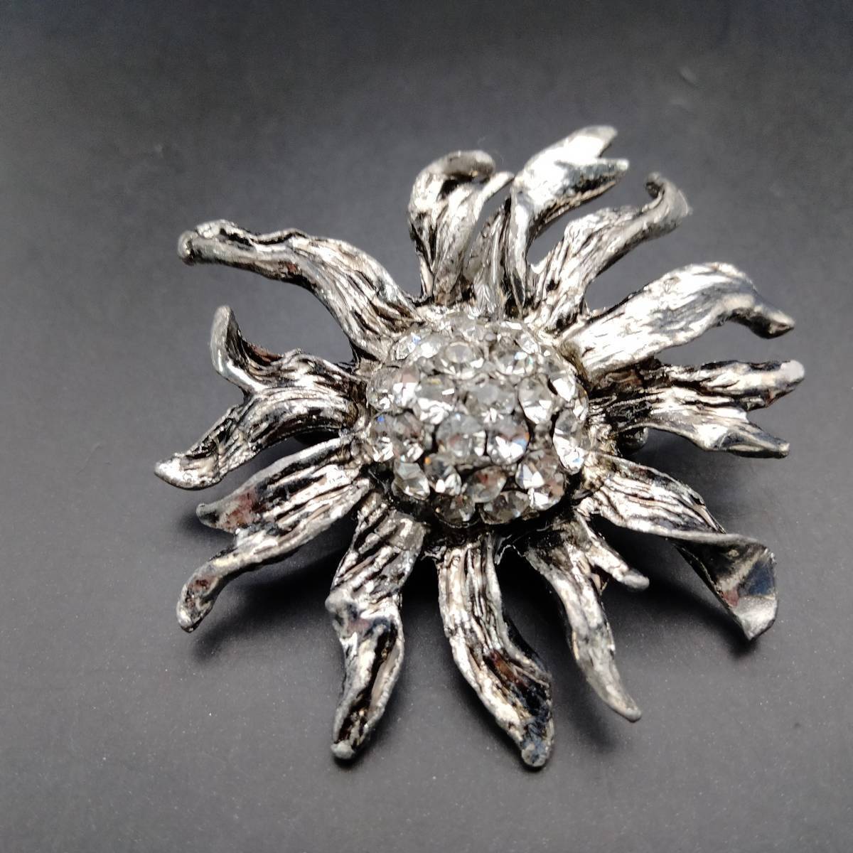 シルバーのひまわり ラインストーン装飾 ヴィンテージ フラワー ブローチ レトロ 上品 ファッションジュエリー 自然派 Y20-C