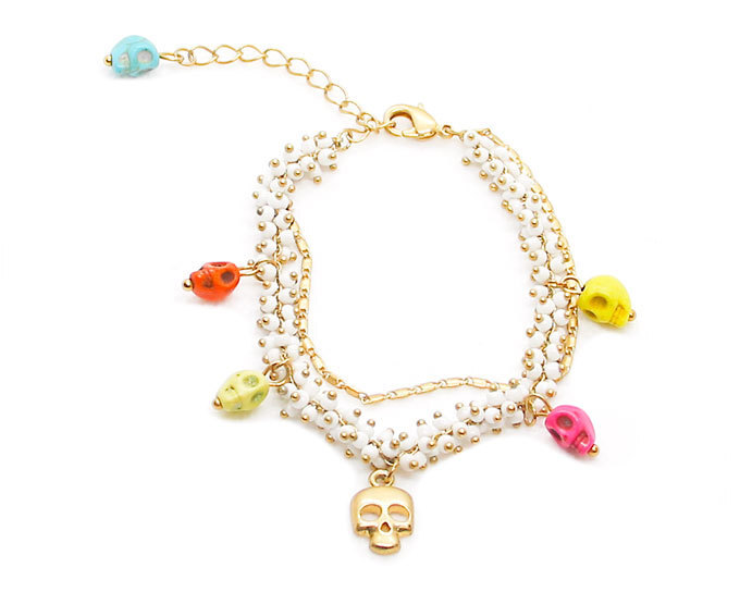 ゴールドとホワイトをベースにしたプラスチック素材のチェーンに、人気のドクロをチャーム採用したおしゃれで個性的なブレスレット。サイズ調整もOK、華やかなマルチカラーですので、腕時計やブレスレットなど他の手持ちアクセサリーと重ね付けしてオシャレを楽しむのも◎。自分へのご褒美はもちろん、誕生日プレゼント、お返しギフト、母の日、記念日など、大切な人への贈り物にもおすすめです。【素材】プラスチック/ステンレス【サイズ】16~21cm(調整可能)【カラー】ゴールド/ホワイト/マルチカラー(チャーム)◆関連ワード◆レディース アクセサリー ブレスレット ドクロ スカル マルチカラー 個性的 クリスマス バレンタイン ホワイトデー 結婚式 誕生日 母の日 限定 通販 掲載画像は可能な限り実物に近づけておりますが、ブラウザ環境により色合いの見え方に誤差が出る場合がございます。 こちらの商品は店頭販売も同時に行っているため掲載中でも実店舗に在庫切れの場合ございます。何卒ご了承願います。