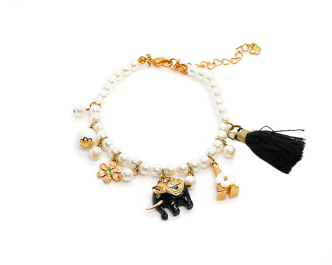 フェイクパールとゴールドのチェーンをベースに、ゾウやエッフェル塔、花(フラワー)、タッセルのチャームがデザインされたブレスレット。サイズ調整もOK、ゴールドとブラックのミックスカラーですので、腕時計やブレスレットなど他の手持ちアクセサリーと重ね付けしてオシャレを楽しむのも◎。自分へのご褒美はもちろん、誕生日プレゼント、お返しギフト、母の日、記念日など、大切な人への贈り物にもおすすめです。【素材】プラスチック/ステンレス【サイズ】19~24cm(サイズ調整可)【カラー】パール/ゴールド/ブラック◆関連ワード◆レディース アクセサリー ブレスレット フェイクパール チャーム ゾウ エッフェル塔 花 フラワー タッセル クリスマス バレンタイン ホワイトデー 結婚式 誕生日 母の日 限定 通販 掲載画像は可能な限り実物に近づけておりますが、ブラウザ環境により色合いの見え方に誤差が出る場合がございます。 こちらの商品は店頭販売も同時に行っているため掲載中でも実店舗に在庫切れの場合ございます。何卒ご了承願います。