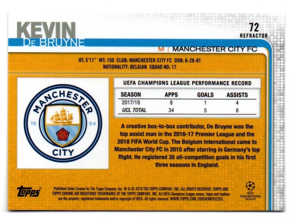 【KEVIN DE BRUYNE(Manchester City)】2018-19 Topps Chrome UEFA Champions League Refractors #72①