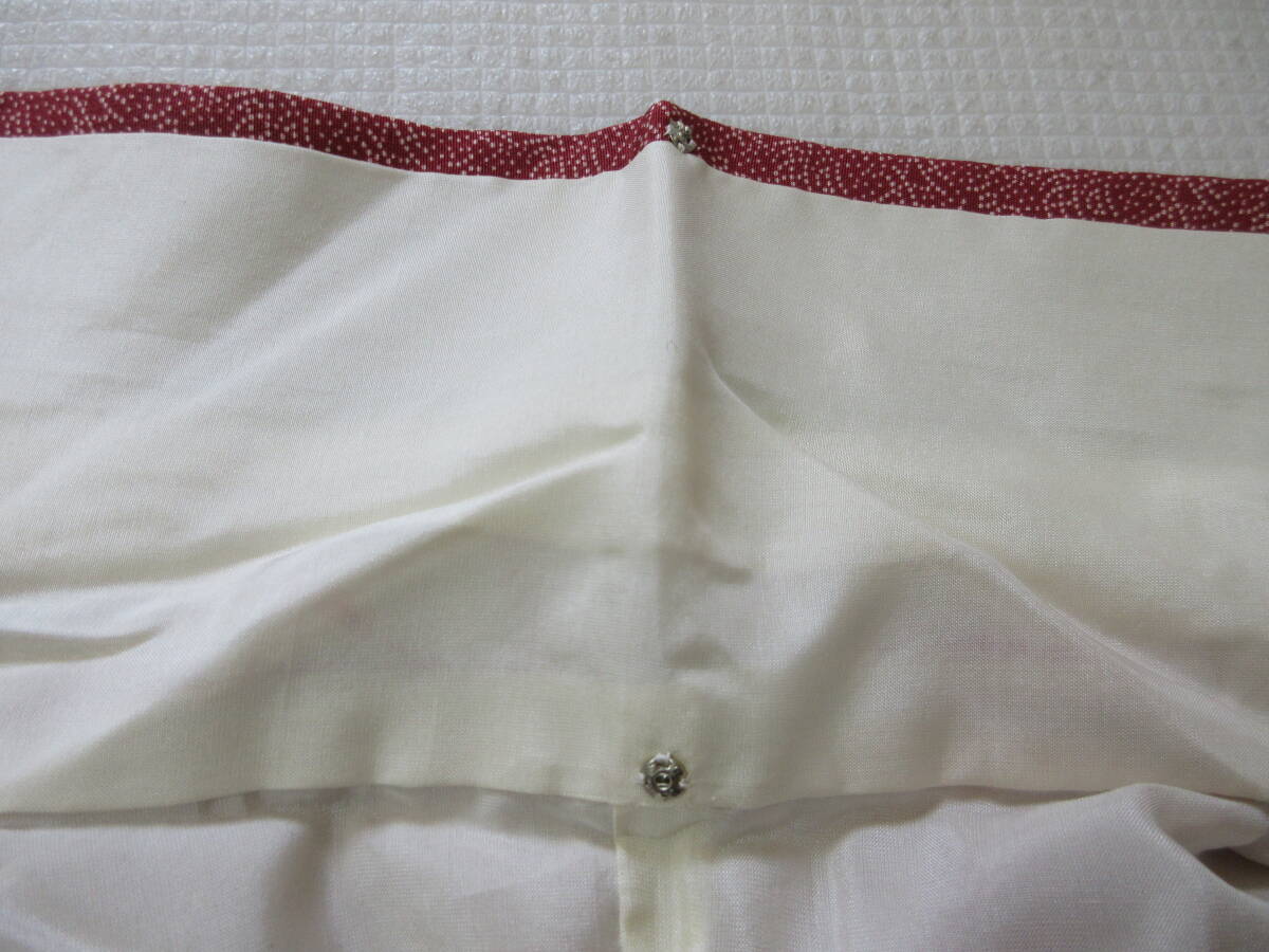 オークションをご覧いただきありがとうございます。 ★サイズ★ 身丈 約142.5㎝ 裄丈 約62.5㎝ 袖丈 約44.5㎝ 前巾 約27㎝ ※平置き実寸です。素人採寸の為、多少の誤差はご了承ください。 ★状態★中古品 衿のスナップボタンがはまりません。 詳細不明、画像判断でよろしくお願いします。 段ボール保管になりますので折りジワがございます。 状態は正確に記載するよう心がけておりますが、記載している以外の見落としについてはご容赦ください。 状態などは個人の主観ですので、神経質な方のご入札はご遠慮いただけますようよろしくお願いします。 | |||