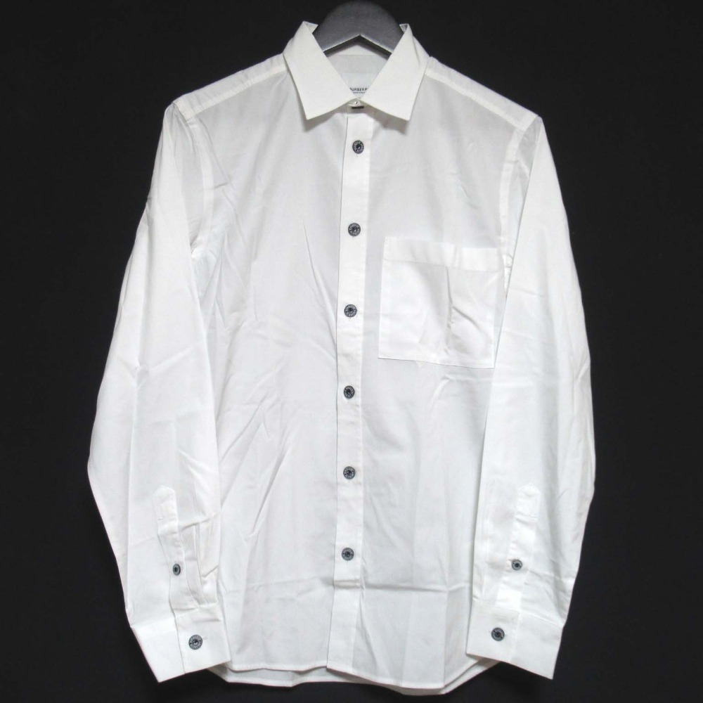 商品名:クリーニング済み 美品 BURBERRY バーバリー ロンドンイングランド ロゴボタン ロングスリーブ 長袖 ドレスシャツ XSサイズ ホワイト