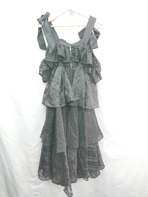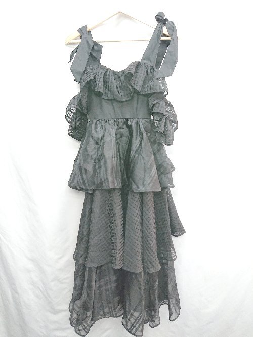 ■ ⊃ pain ティアード チェック柄 チュール ロング丈 ワンピース サイズF ブラック レディース E