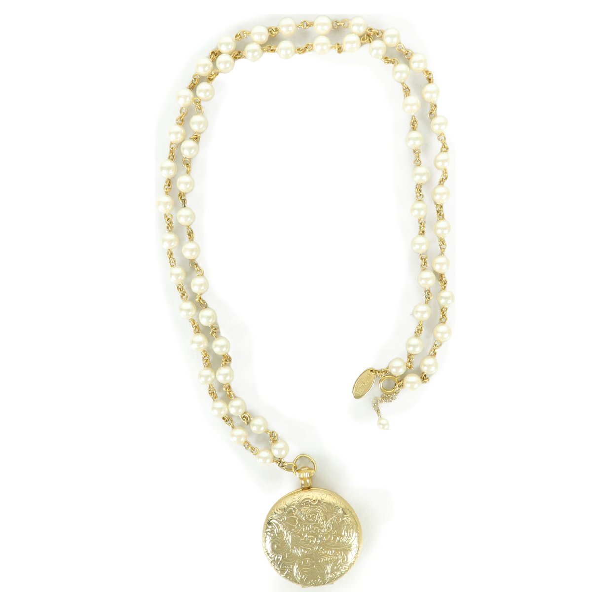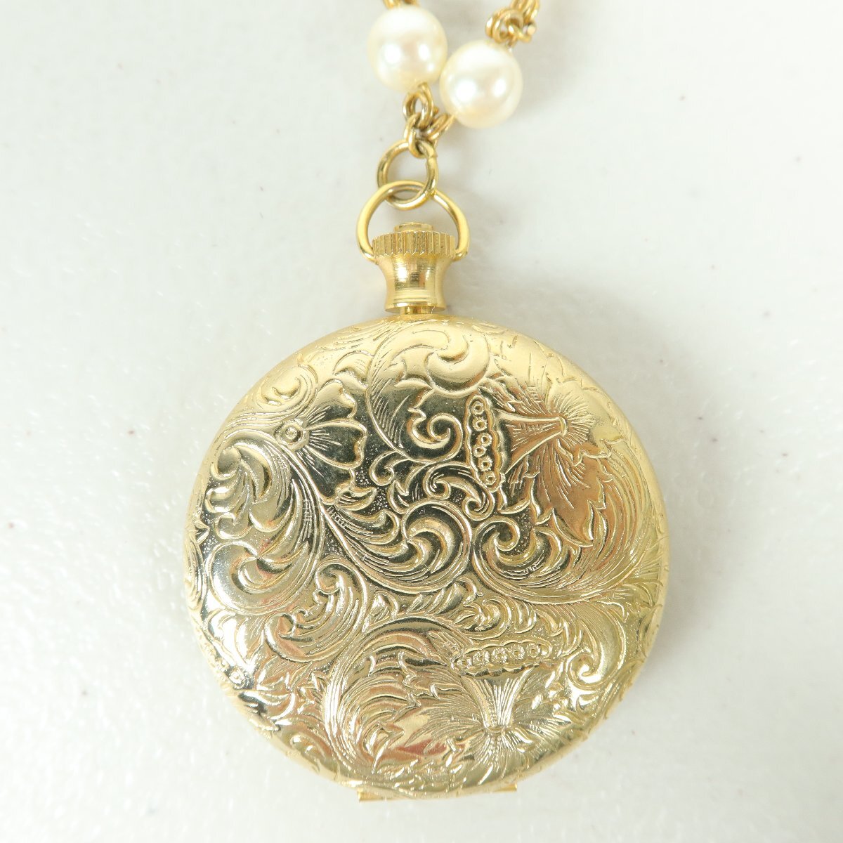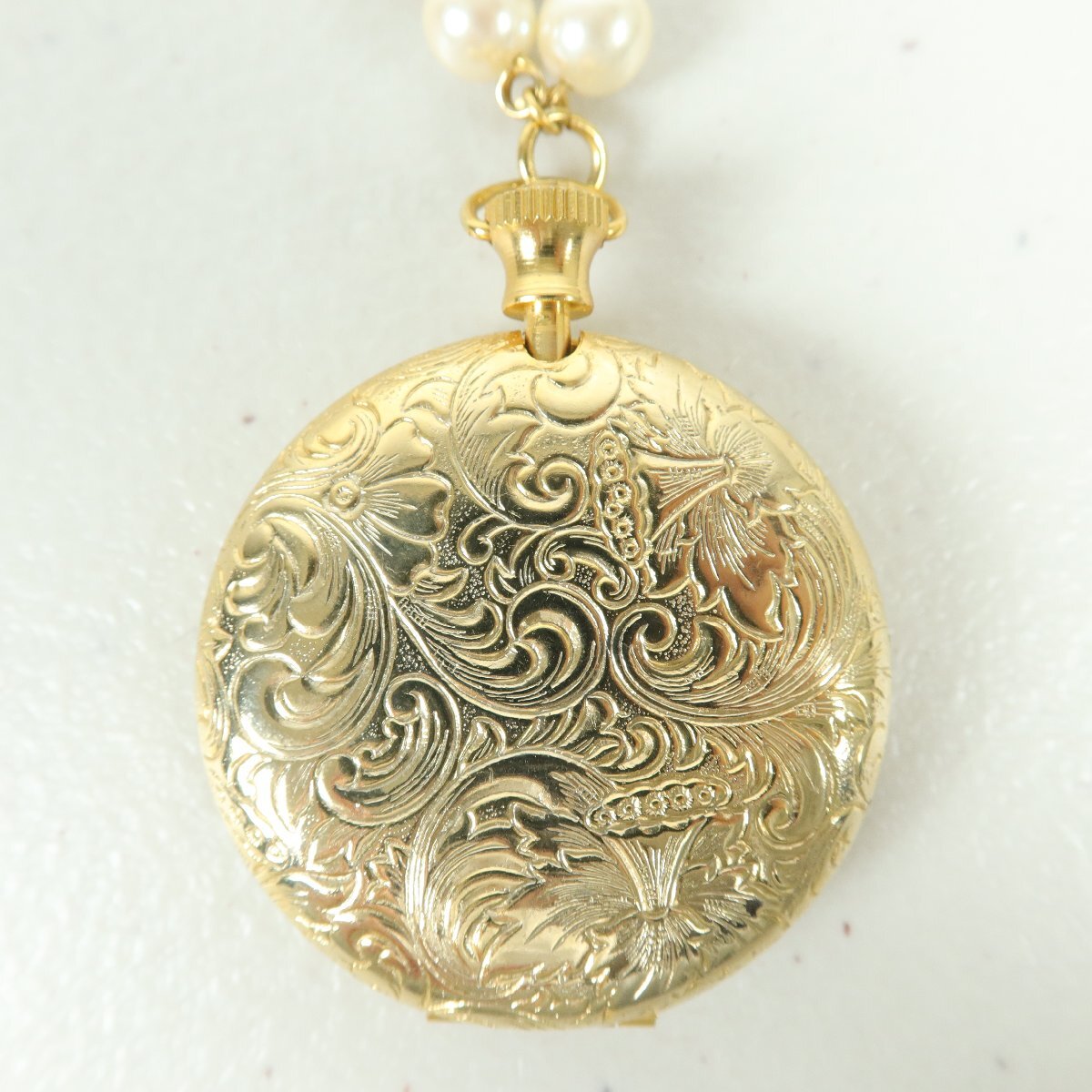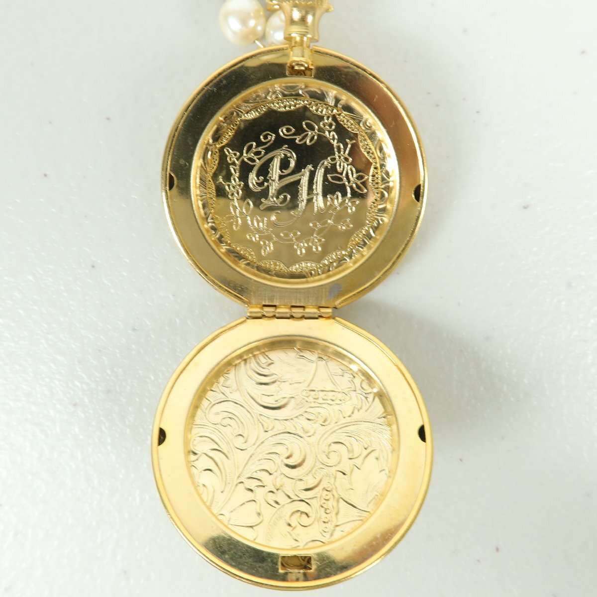 【美品】ピンクハウス★ロケットペンダント ゴールド×白系 パール調 懐中時計風ロケット レターパック可 k3171