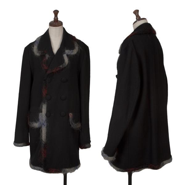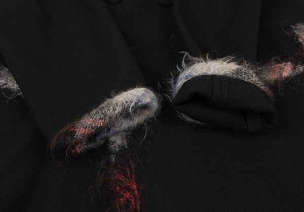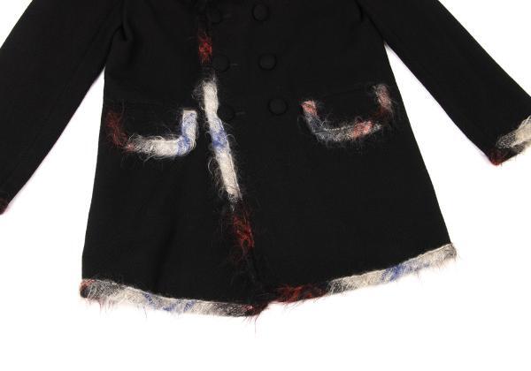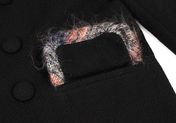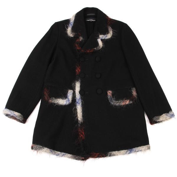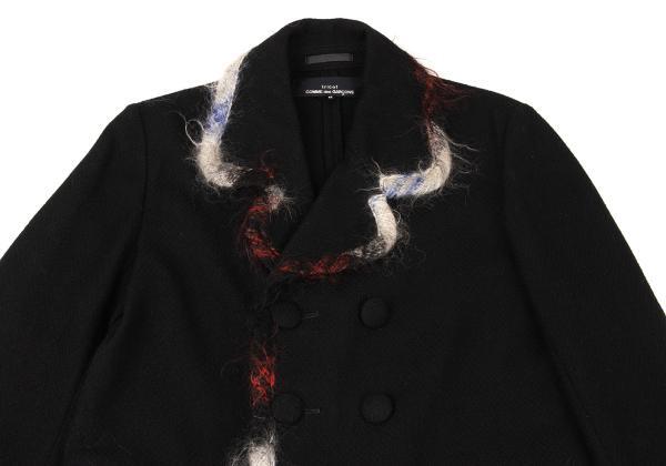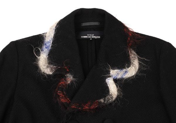 トリココムデギャルソンtricot COMME des GARCONS シャギーチェックパイピングロングダブルジャケット 黒グレーマルチM |
