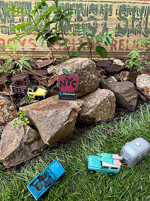 本人たちが大のアウトドア好きなだけに クルマやアウトドアギアにもしっかりと貼れるように