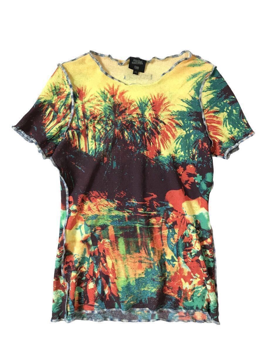 (D) Jean Paul GAULTIER FEMME ジャンポールゴルチエ 総柄 ポリエステル 半袖Tシャツ 40 カットソー (ma)