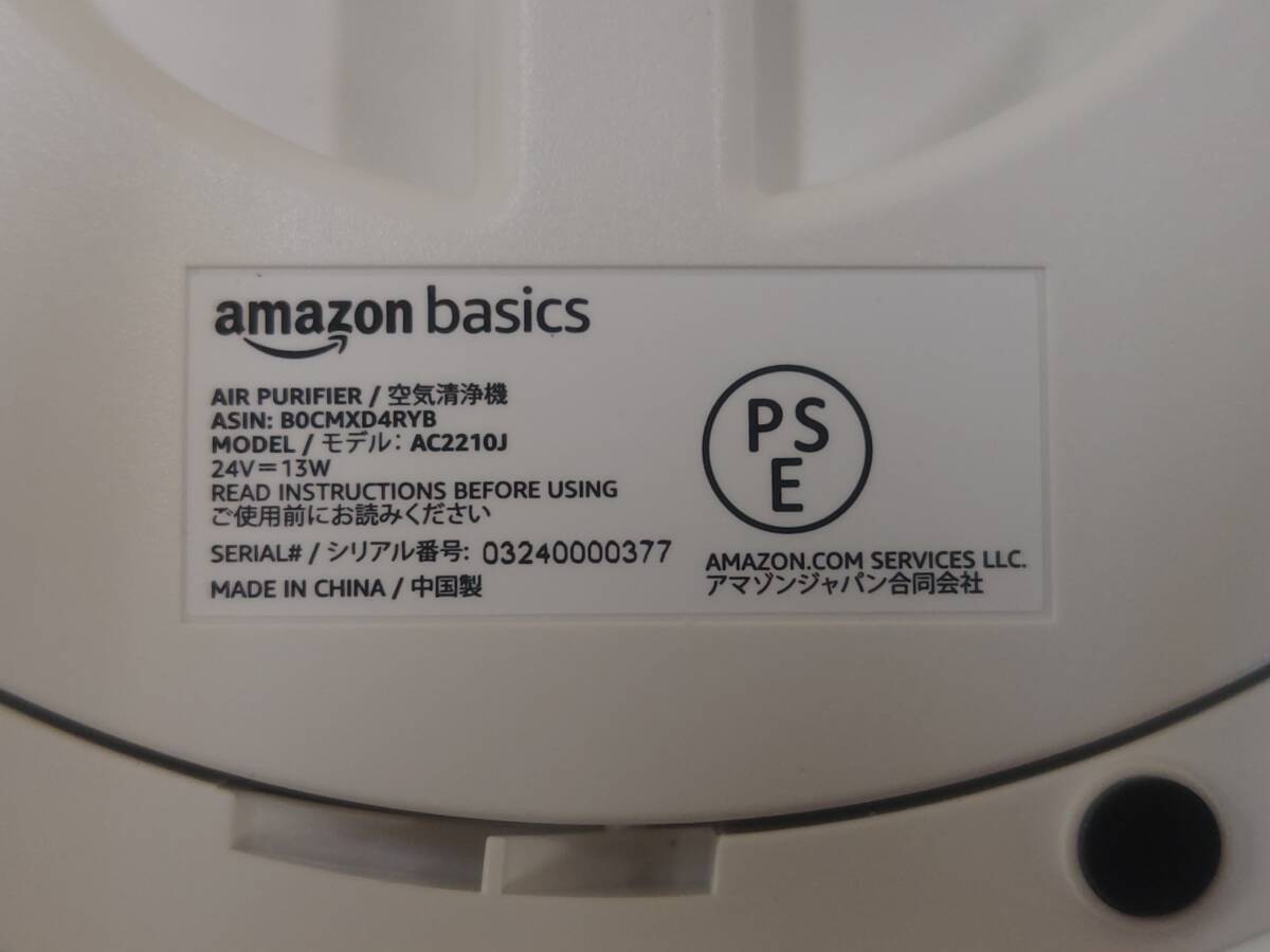 あ//つH2710 【未使用・保管品】 アマゾン amazon basics  空気清浄機 AC2210J エアクリーナー 取扱説明書 通電OK