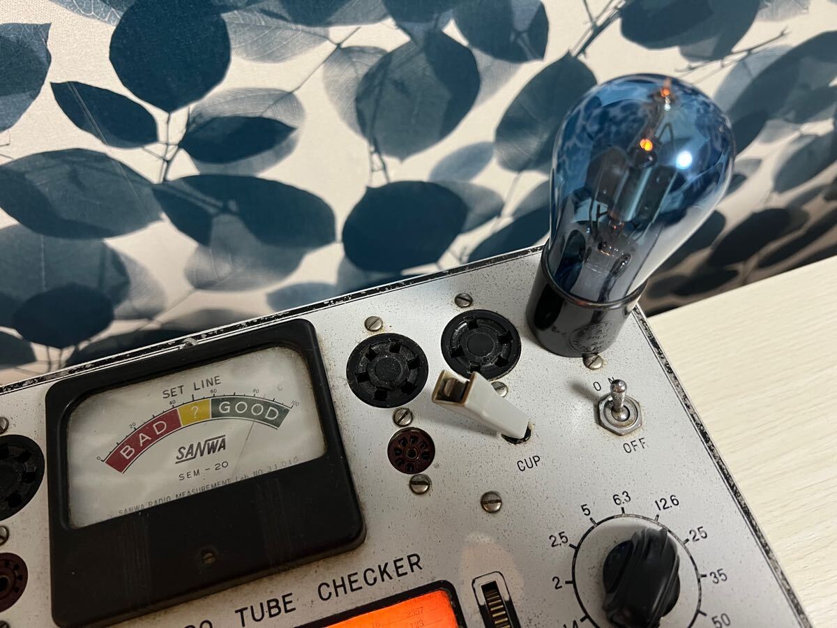 当方の試験機で同型式の未使用の真空管を試験すると80程度の値を示しますので基準として参考にしてください。