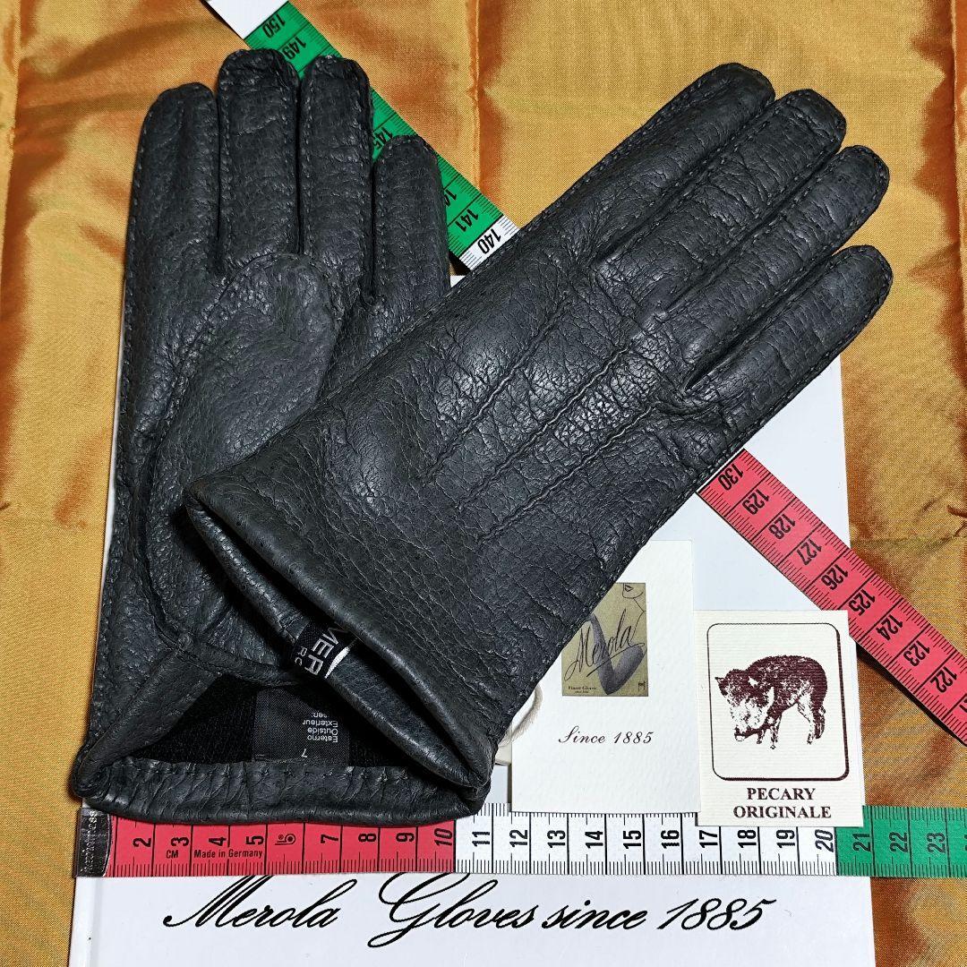 廃版 2025秋冬価格 メローラ ペッカリー灰 カシミア グローブ 革手袋 MEROLA