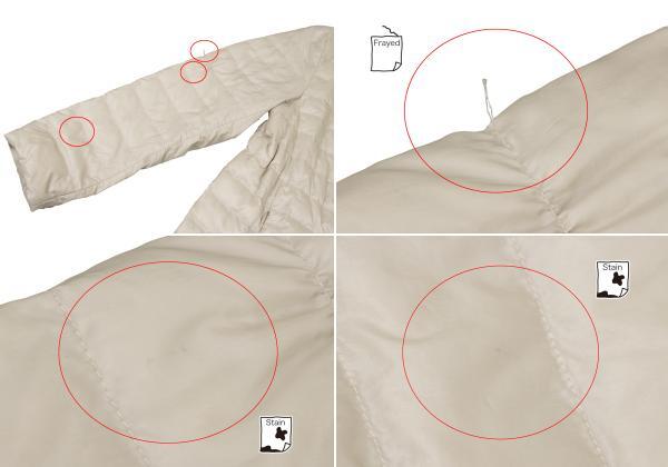 コンディション | 右袖にほつれ・汚れ、左袖口にほつれ、前裾・後ろ全体に汚れがあります(写真参照)。その他目立ったシミ、汚れ、ほつれ等なくいい状態です。クリーニング済み。 |