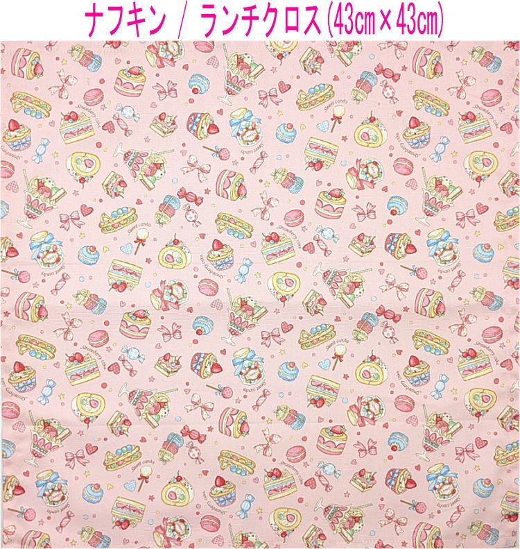 ナフキン・ランチクロス(43cm×43cm)正方形【スイーツケーキ柄 ピンク】ランチマット ランチョンマット 日本製 カップケーキ マカロン