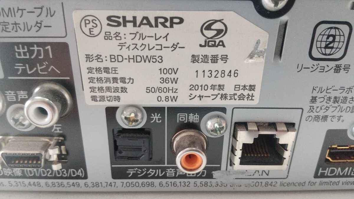 K1520 SHARP AQUOS BD-HDW53 2010年製 ブルーレイレコーダー/シャープ/アクオス 通電OK その他不具合あり 現状品