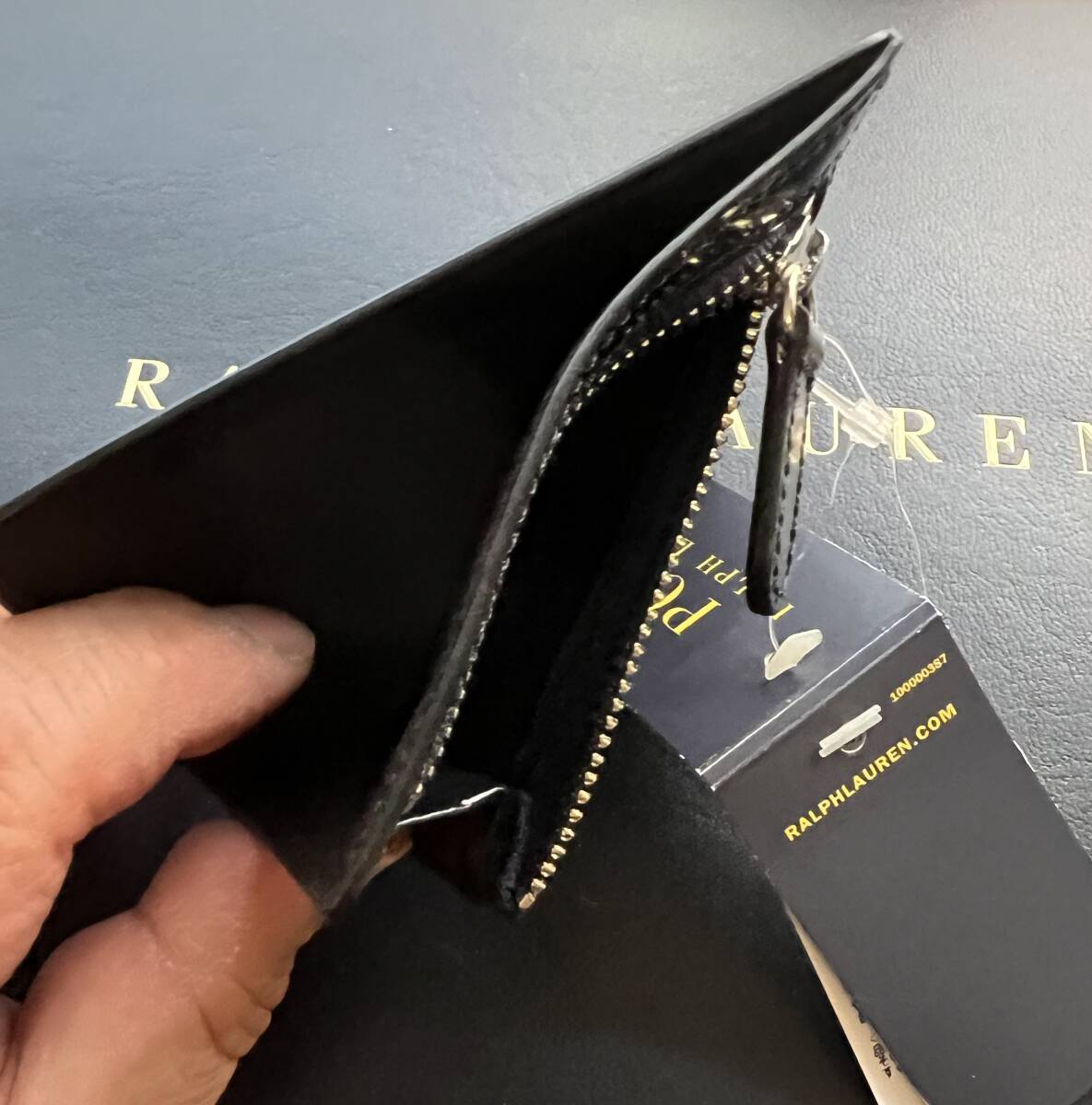 細部も『 POLO RALPH LAUREN 』のデボス刻印がカード入れの面に、反対の小銭入れの方にはお馴染みのアイコンである『POLO PONY』のデボス刻印と一目でRALPH LAURENのそれと解る優れた職人技と情熱が反映されたアイテムで、更に縁には精巧に施されたペイントやシングル ニードル ステッチといったハンドフィニッシュのディテールの数々。。。