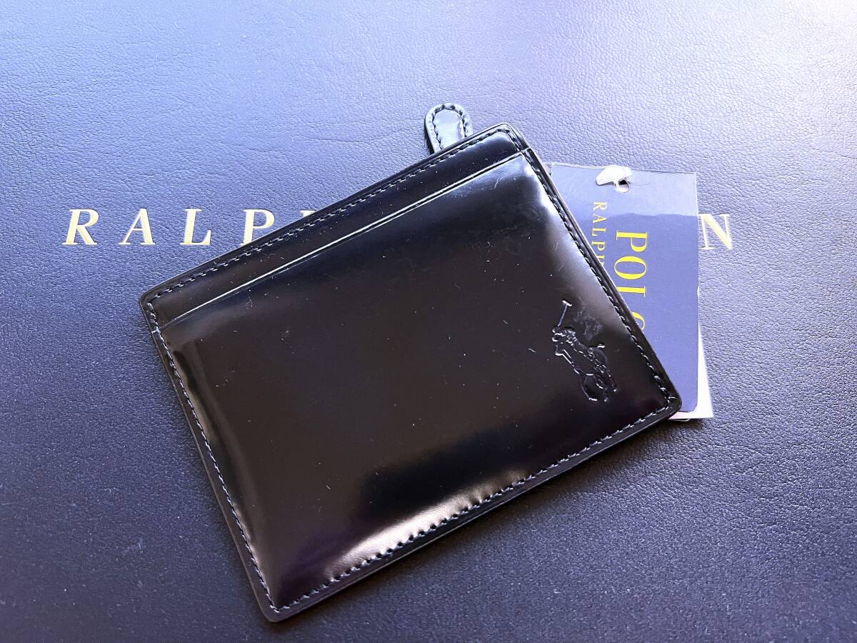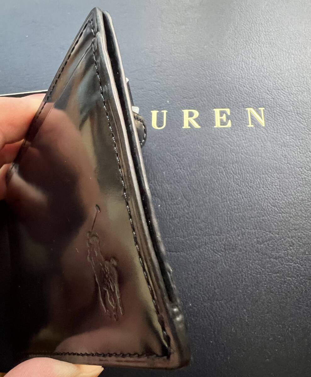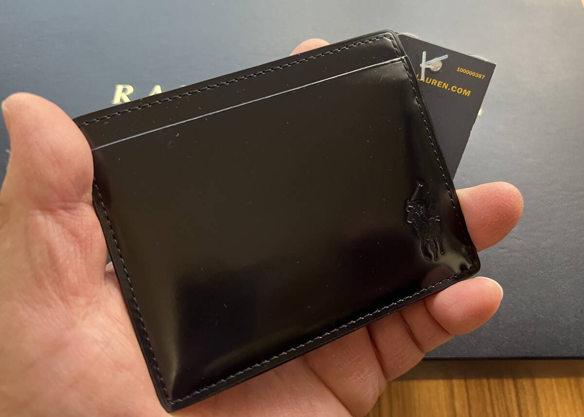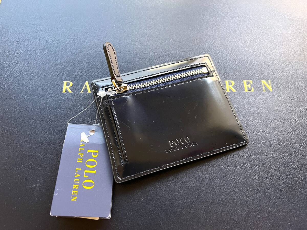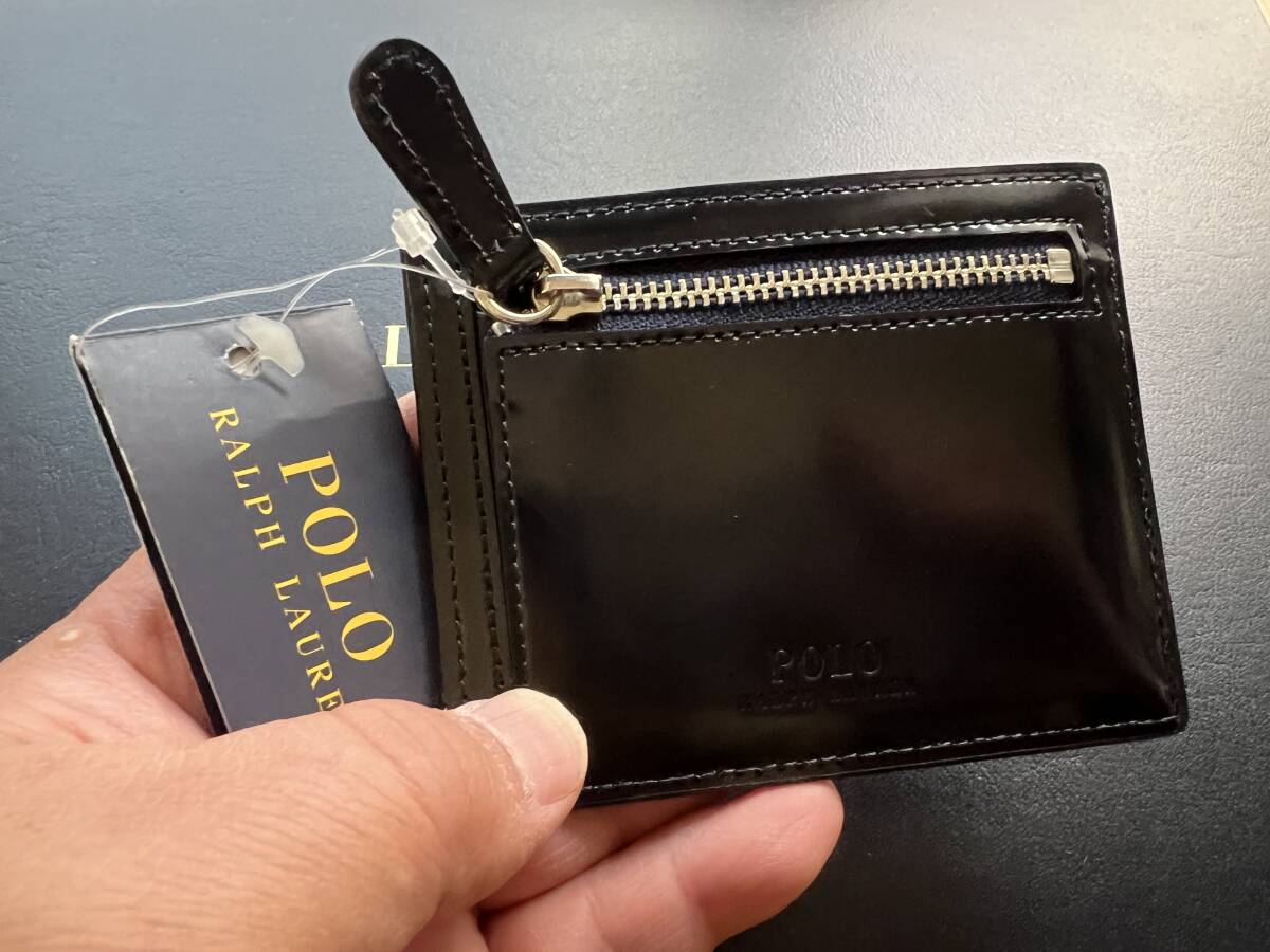 送料無料☆新品タグ【圧巻の濃紺パテントレザー】POLO ラルフローレン本物を知る大人にオススメするコンパクト・ウォレット/小銭入れ付財布