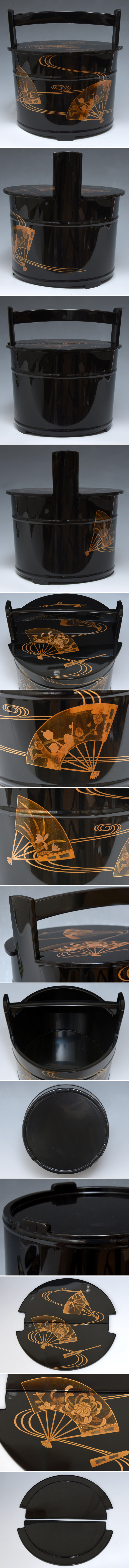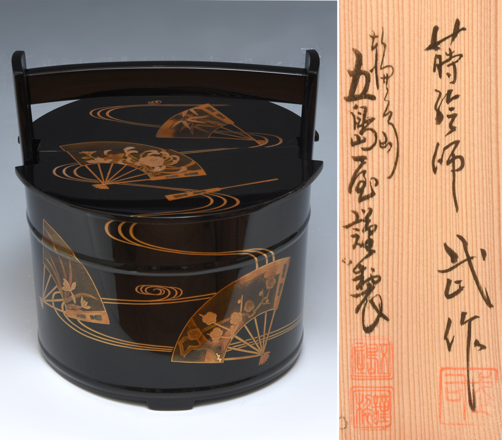 輪島塗 蒔絵師 武(造)扇面四君子蒔絵 手桶水指 共箱 木工芸 漆工芸 漆芸 天然木 木製漆器 輪島五島屋謹製 |