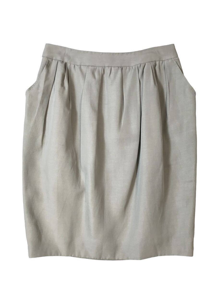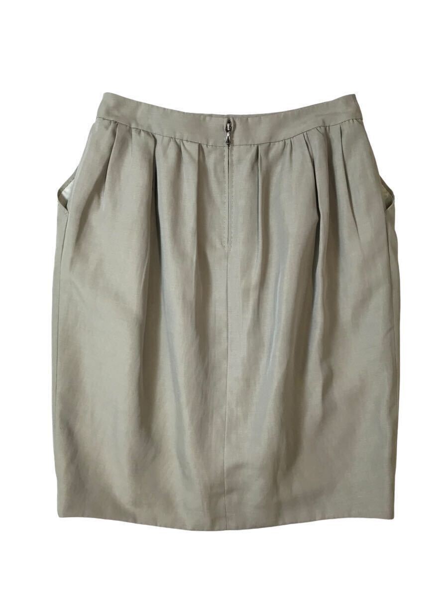 (D) ADORE アドーア ポリエステル リネン スカート 38 グリーン系 (ma)