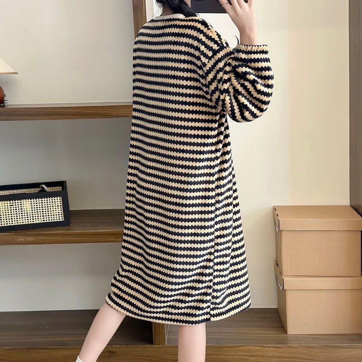 ルームウェア 秋冬 レディース ネグリジェ ボーダー柄ワンピース 秋冬パジャマ 寝巻き ロングお寝巻き もこもこ ふわふわ ルームワンピース 春秋 長袖 ロング丈 可愛い SLPC005(M-2XL)