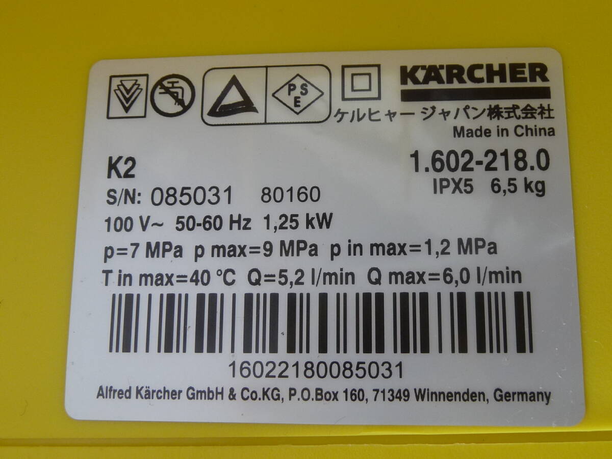 ◆品名 KARCHER ケルヒャー 家庭用高圧洗浄機 K2