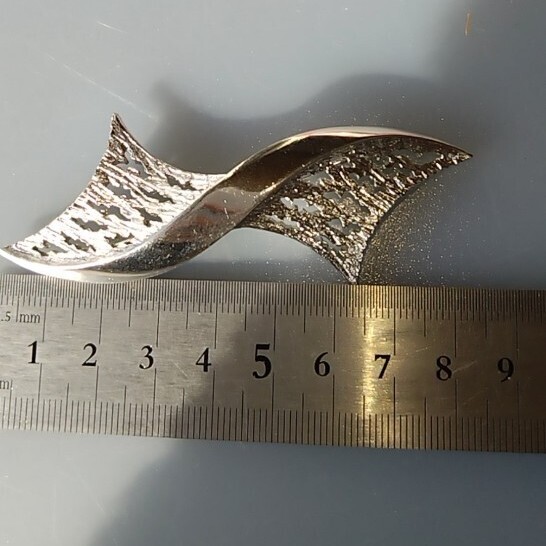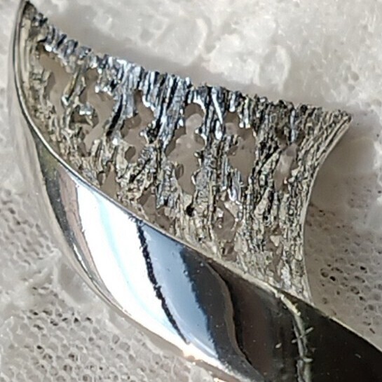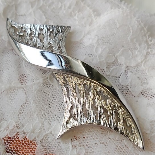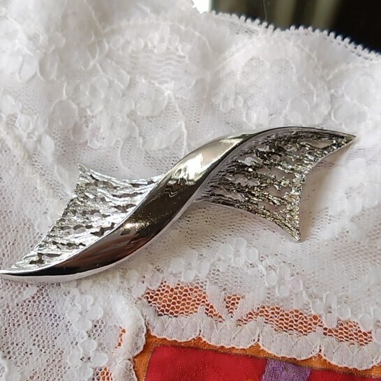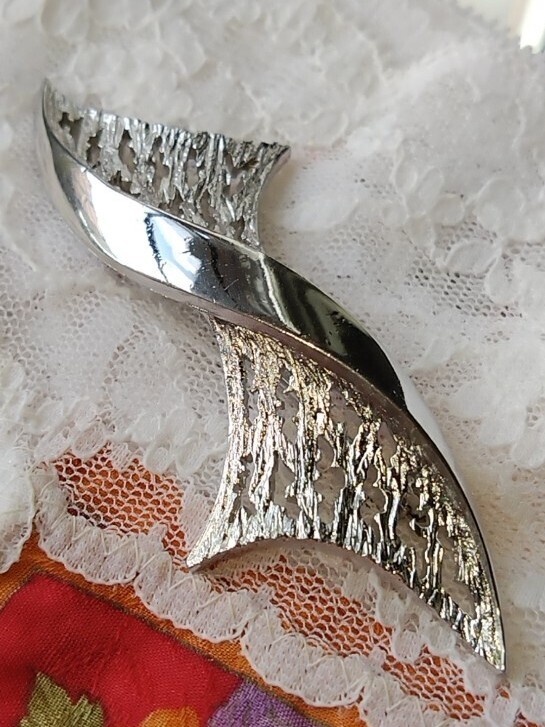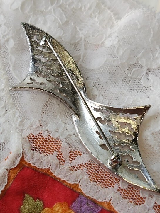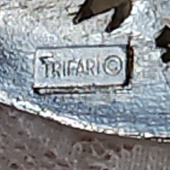 アメリカの老舗ジュエリーブランド トリファリのブローチです。洗練されたデザインで素敵です。シルバーカラー透かしデザイン、しっかりした造りです。ブランド刻印あり。