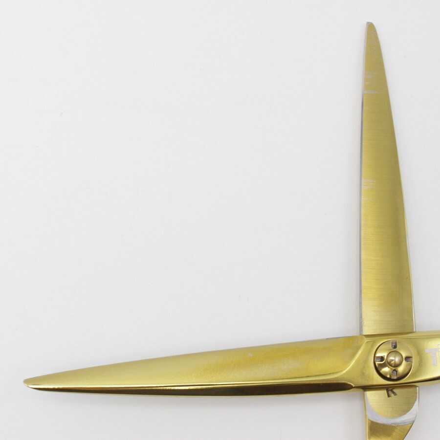 【研磨済】TIC K-60 ゴールドコーティング カットシザー 6インチ 片剣刃 3Dハンドル ティック
