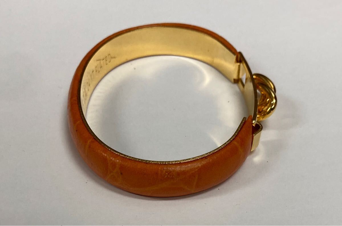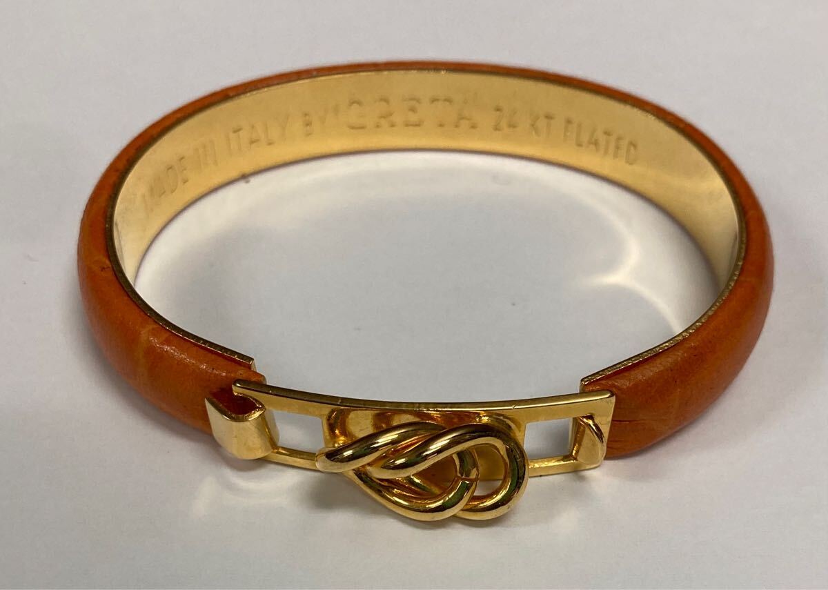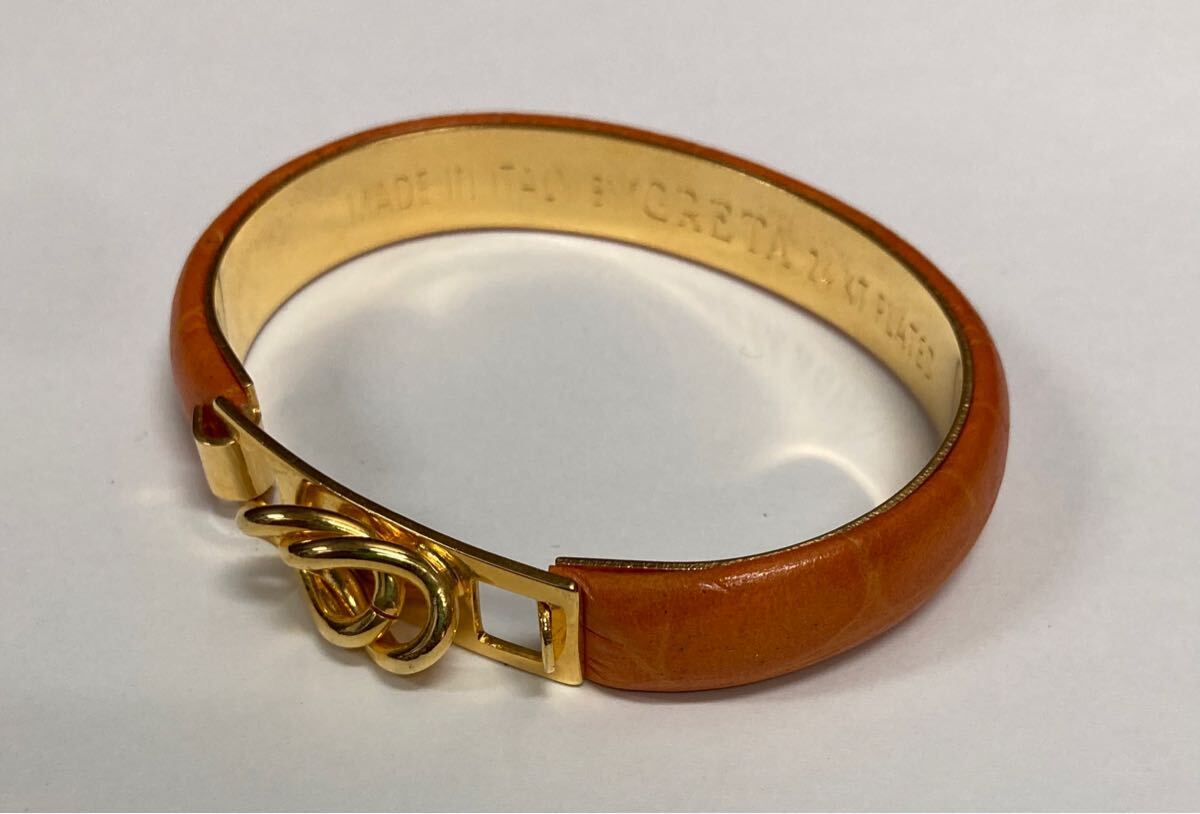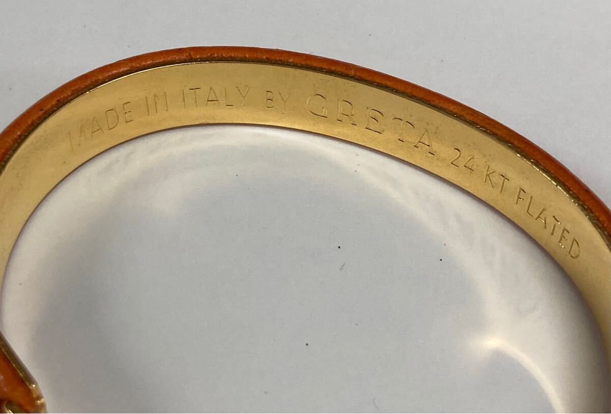 GRETA グレタ ♪ ブレスレット バングル レザー 革 オレンジ 茶系 イタリア製 24KT PLATED (管理04)