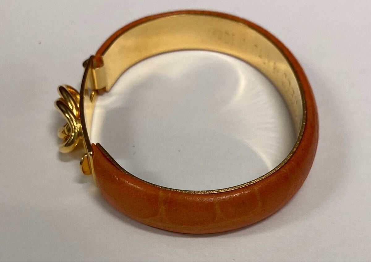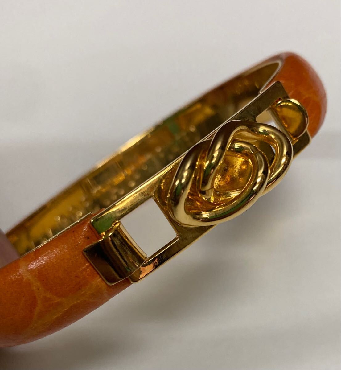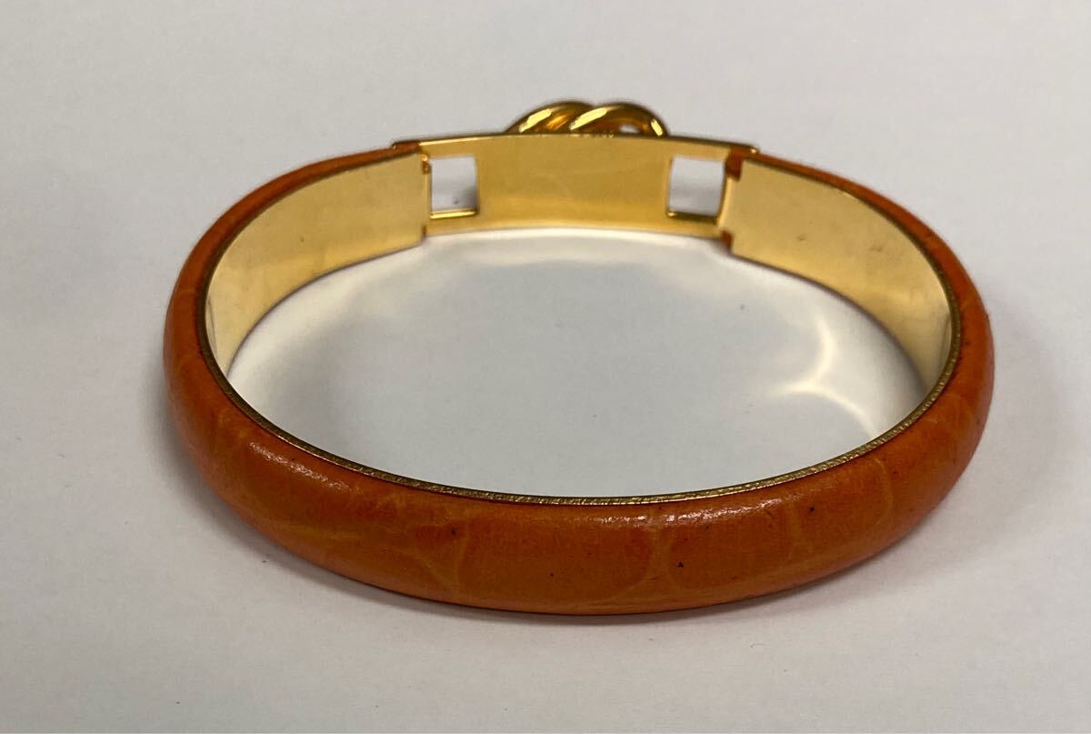 GRETA グレタ ♪ ブレスレット バングル レザー 革 オレンジ 茶系 イタリア製 24KT PLATED (管理04)