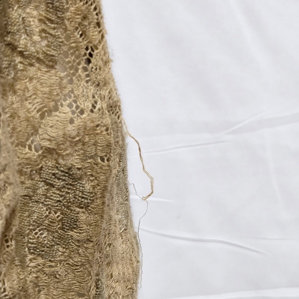 コンディション備考 | 前後各所糸吊り、右前身頃に数カ所シミがございます。使用感は見受けられますが、まだまだお使いいただけます。前所有者による香水臭がやや残ります。簡易的に臭い取りを行いましたが完璧に落とすことができませんでした。酷い臭いではありませんので敏感な方でなければ問題の無い範囲だと思います。 |