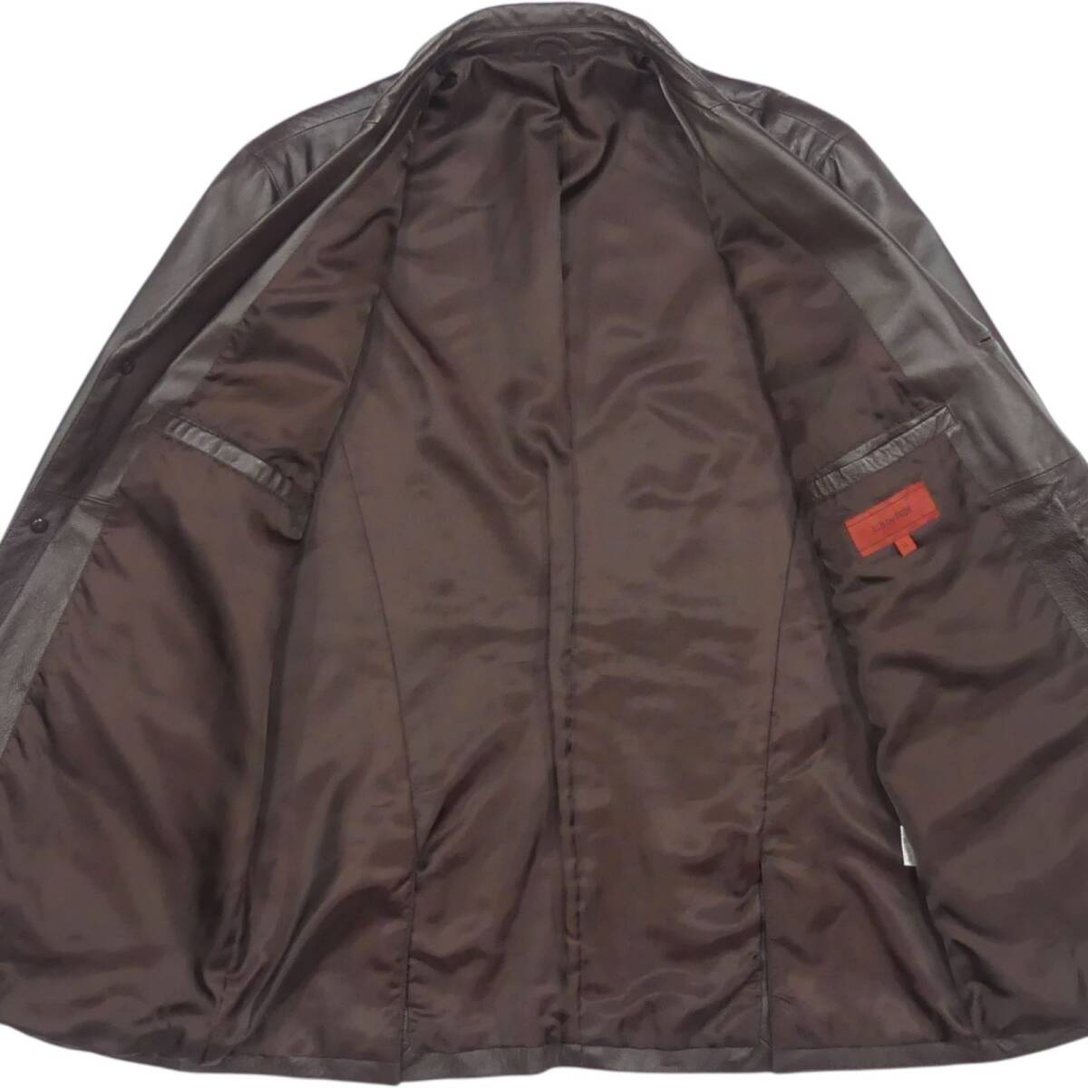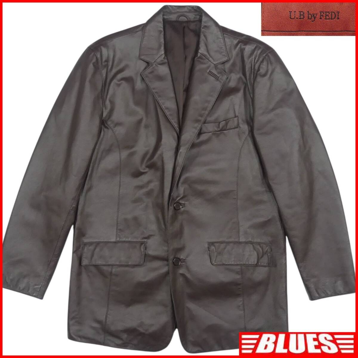 即決★FEDI★メンズ XL レザーテーラードジャケット フェディ 茶 本革 ブレザー 本皮 スーツ 革ジャン 背広