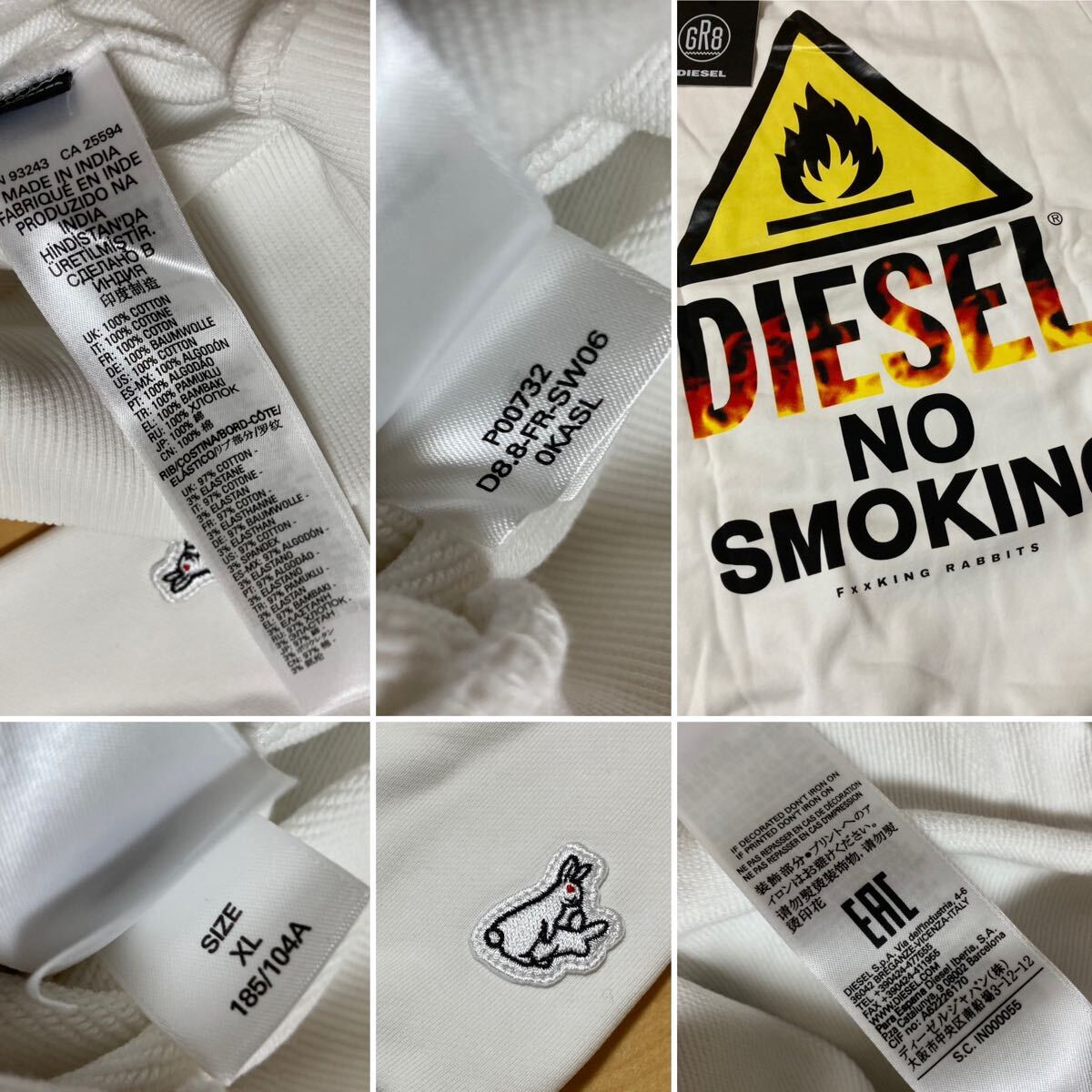 未使用☆XL [DIESEL×GR8×FR2] 20SS No Smoking スウェットシャツ トレーナー XL ホワイト D8.8-FR-SW06 ディーゼル エフアールツー