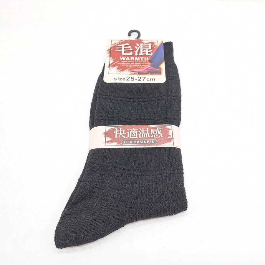 メンズ 毛混 無地 チェック柄 ソックス 5足 MWP3 25-27センチ ビジネス