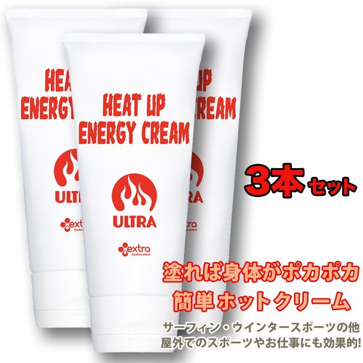 EXTRA:HEAT UP ENERGY CREAM 3本セット サーフィン前に身体に塗るだけ ポカポカに温まる ヒートアップエナジークリーム ホットクリーム