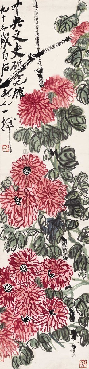 斉白石 赤菊図 水墨 彩色図 宣紙画芯 装飾 掛け軸 東洋画