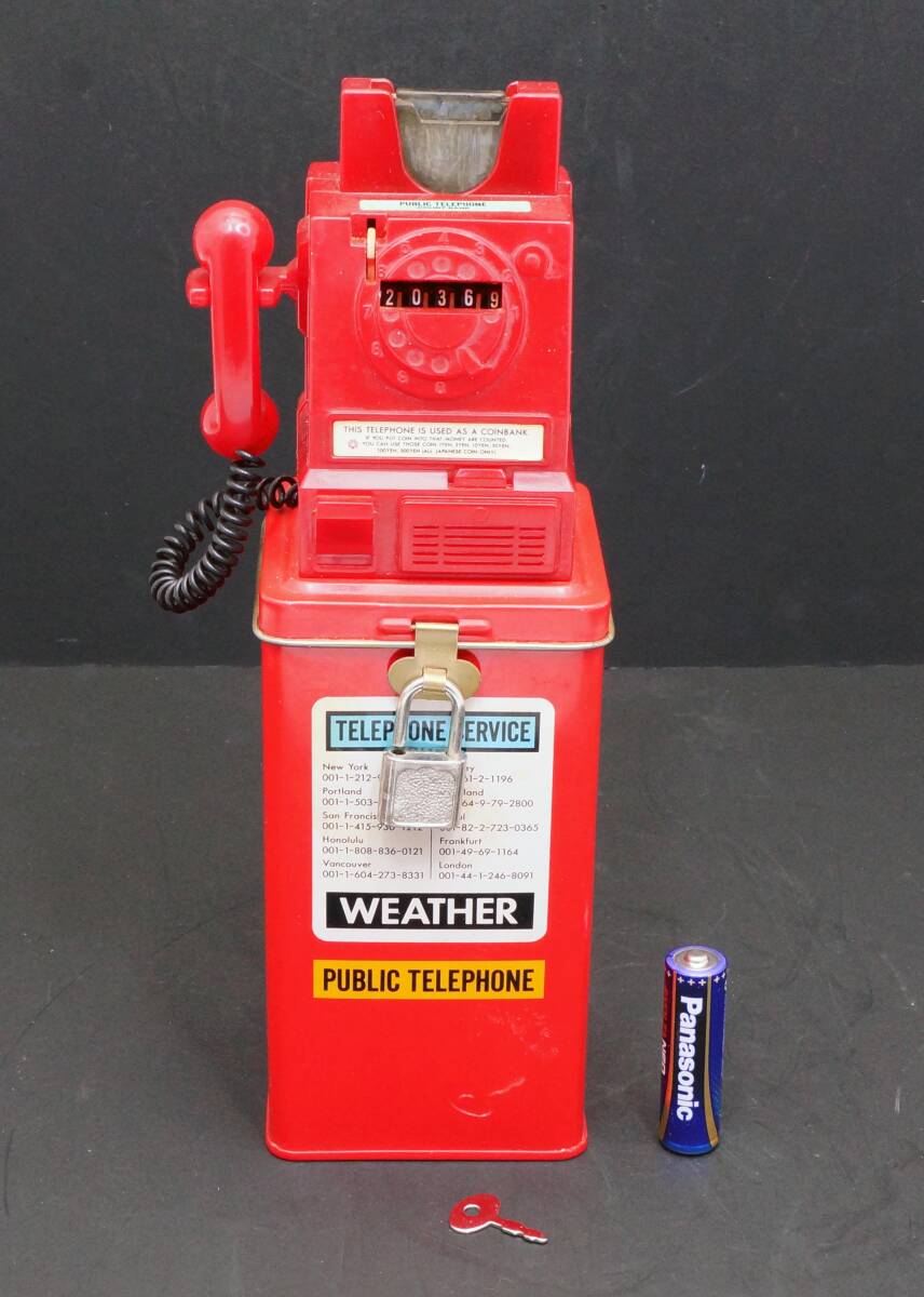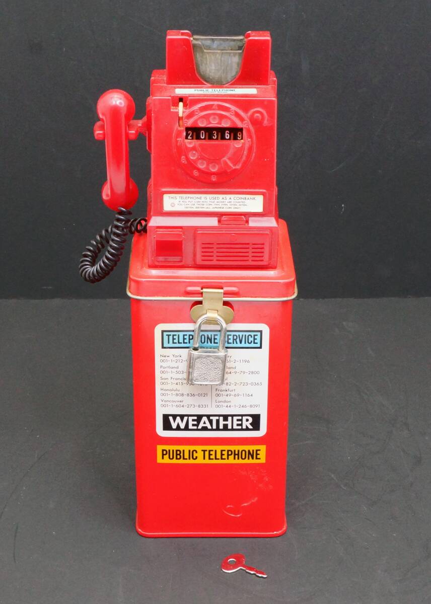 | 1986年製 ビンテージ 公衆電話型貯金箱 鍵付 | |